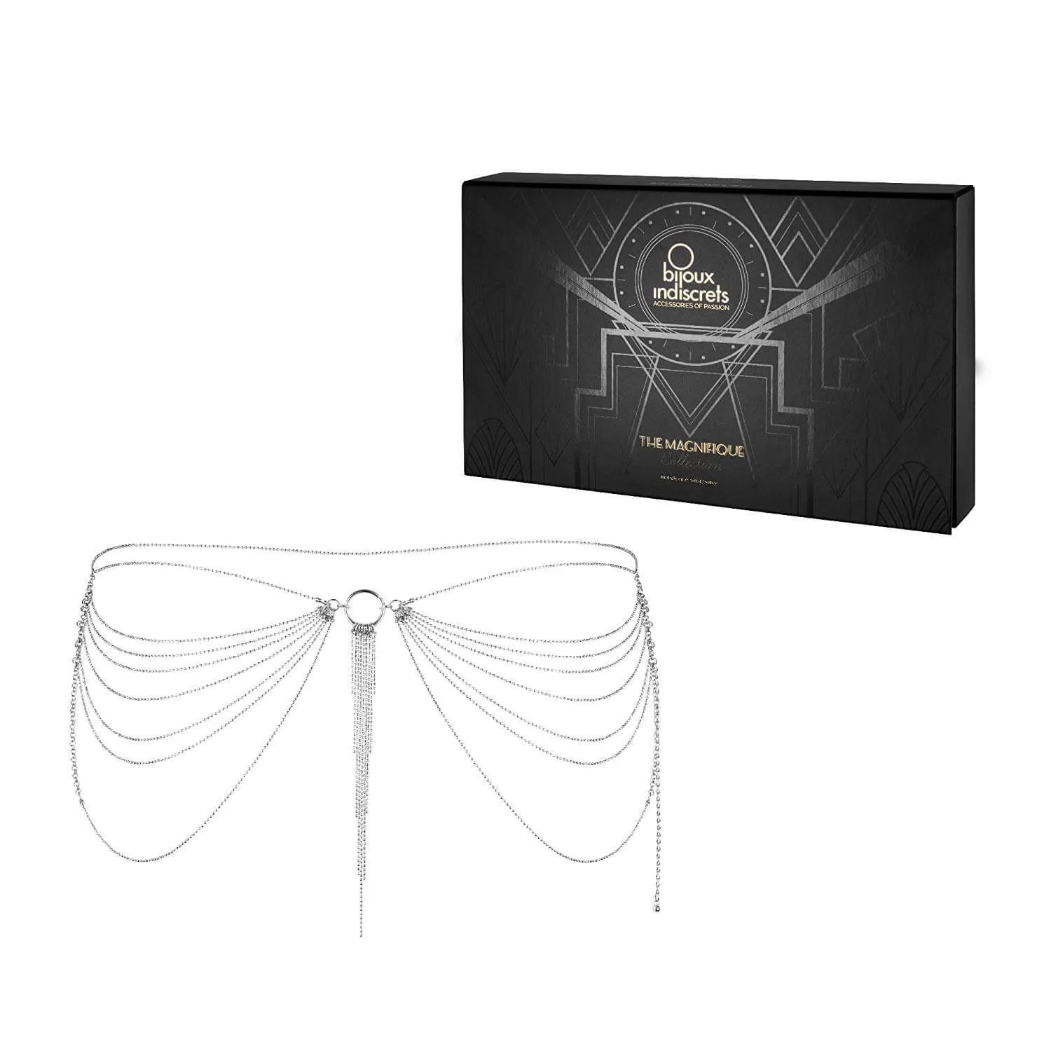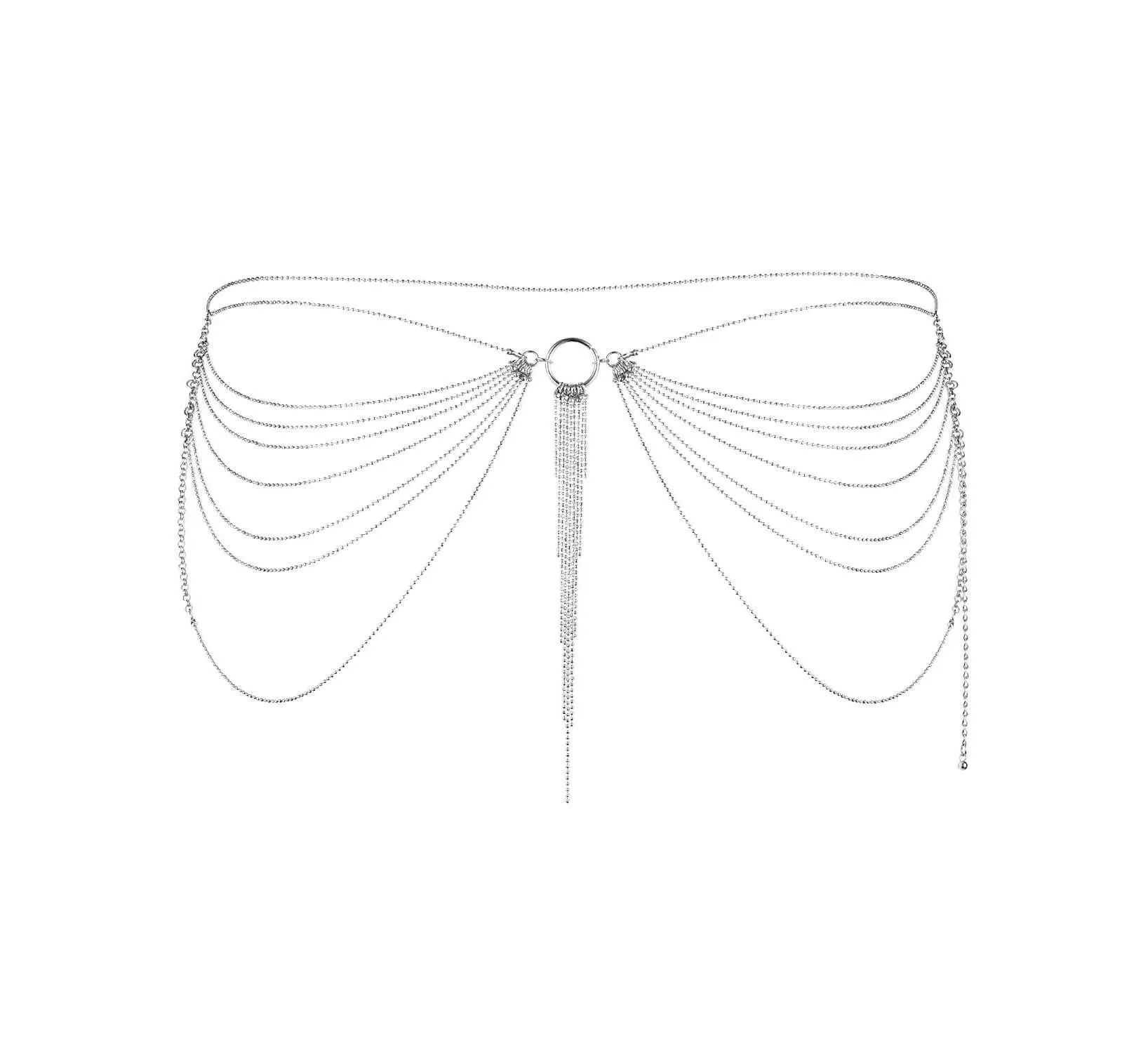 Элегантная цепь на талию из серии Magnifique от бренда Bijoux Indiscrets - это необычный аксессуар, который будет украшать женскую фигуру, плавно очерчивая каждый ее изгиб. Дизайн аксессуаров из серии Magnifique был навеян танцовщицами кабаре в Нью-Йорке двадцатых годов, чья чувственность и соблазнительность присутствовали в каждой детали их образа. При выходе в свет цепь поверх вечернего наряда подчеркнет Вашу элегантность и уникальный стиль, а в приватной обстановке с Вашим возлюбленным она превратится в оружие соблазнения. Цепь регулируется, также Вы можете носить ее не только на талии, но и на груди.