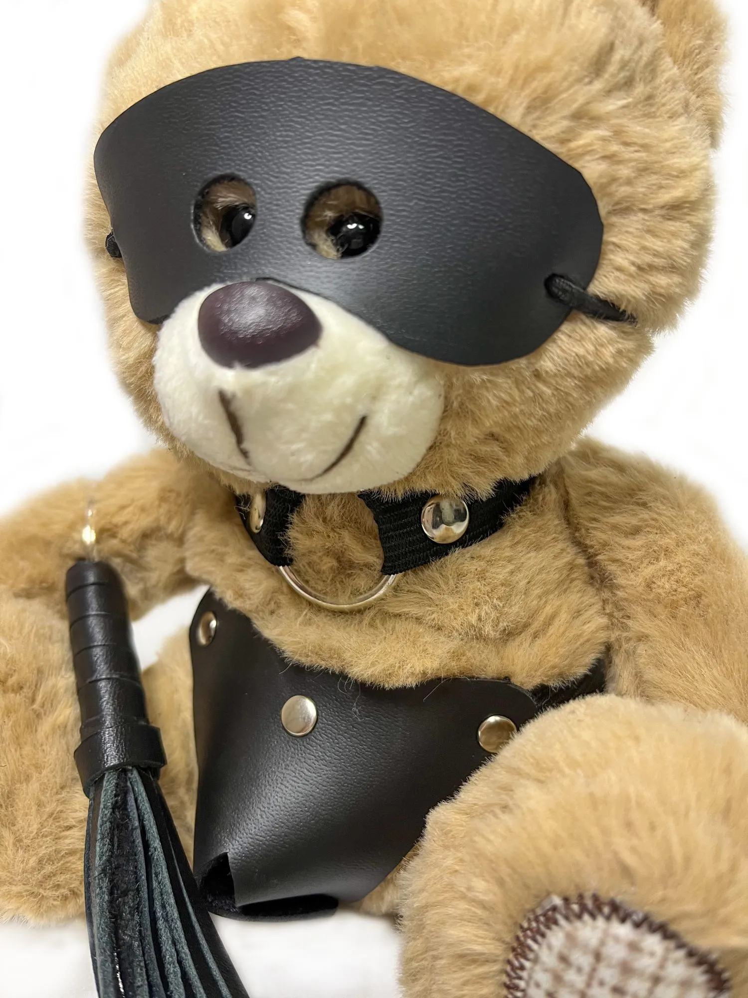 Миниатюрный БДСМ Мишка  в очень интересном образе. Великолепная идея для подарка или оригинального элемента в интерьере. Этот малыш сразит Вас своим обаянием! Деталь, заслуживающая отельного внимания - плеть, которая является самостоятельным брелком, ее можно повесить на сумку, на ключи или любой другой аксессуар по Вашему желанию. Высота медвежонка 20см. Костюмчик выполнен из искусственной кожи. Цвет мишек серый