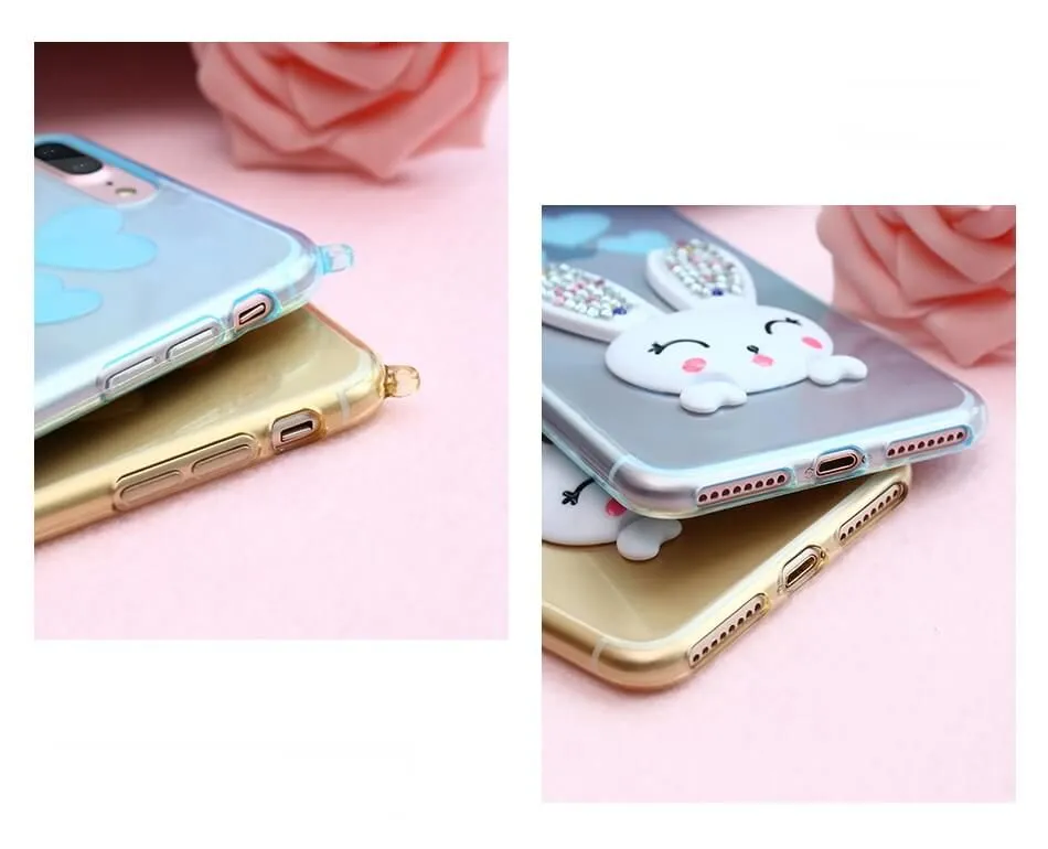 Очаровательный чехол серого цвета для iPhone 6/6S станет еще одной запоминающейся деталью Вашего яркого образа! Сзади чехол декорирован милым зайчиком, благодаря которому аксессуар выглядит невероятно мило. Ушки зайчика украшены сияющими стразами, весело переливающимися на свету. Также благодаря небольшому колечку к чехлу можно прикрепить дополнительные украшения, например брелок.