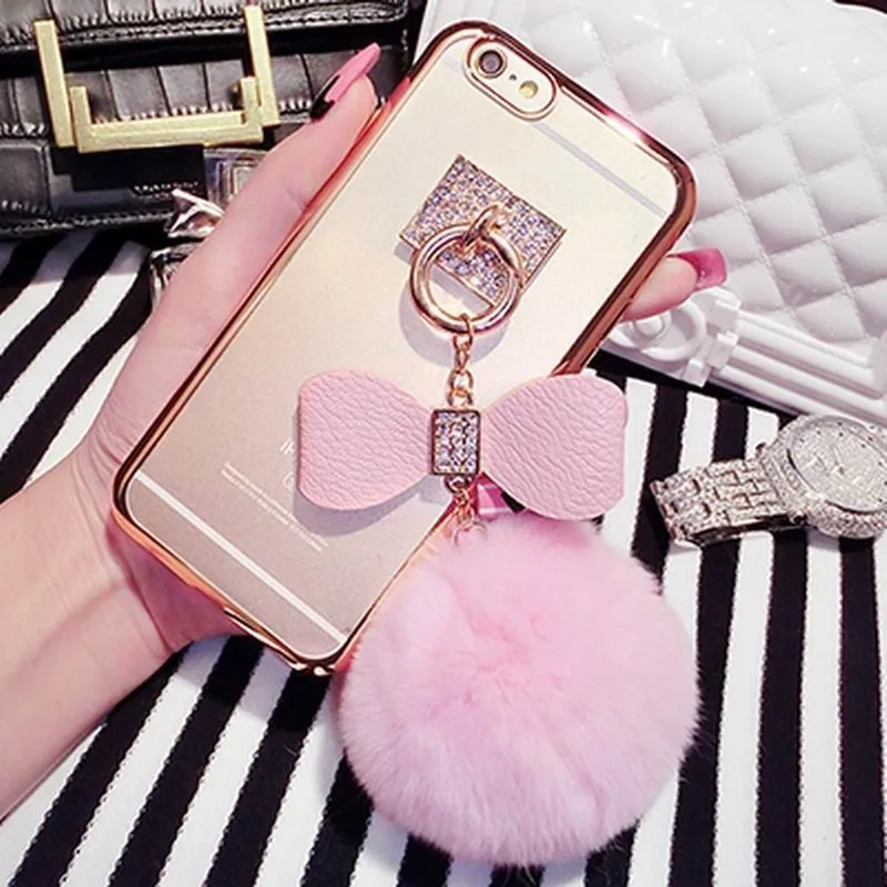 Очаровательный чехол для iPhone 6/6S станет еще одной запоминающейся деталью Вашего яркого образа! Сзади прозрачный чехол декорирован большим помпончиком светло-розового цвета, благодаря которому аксессуар выглядит невероятно мило. Также он украшен бантиком со стразами, весело переливающимися на свету.