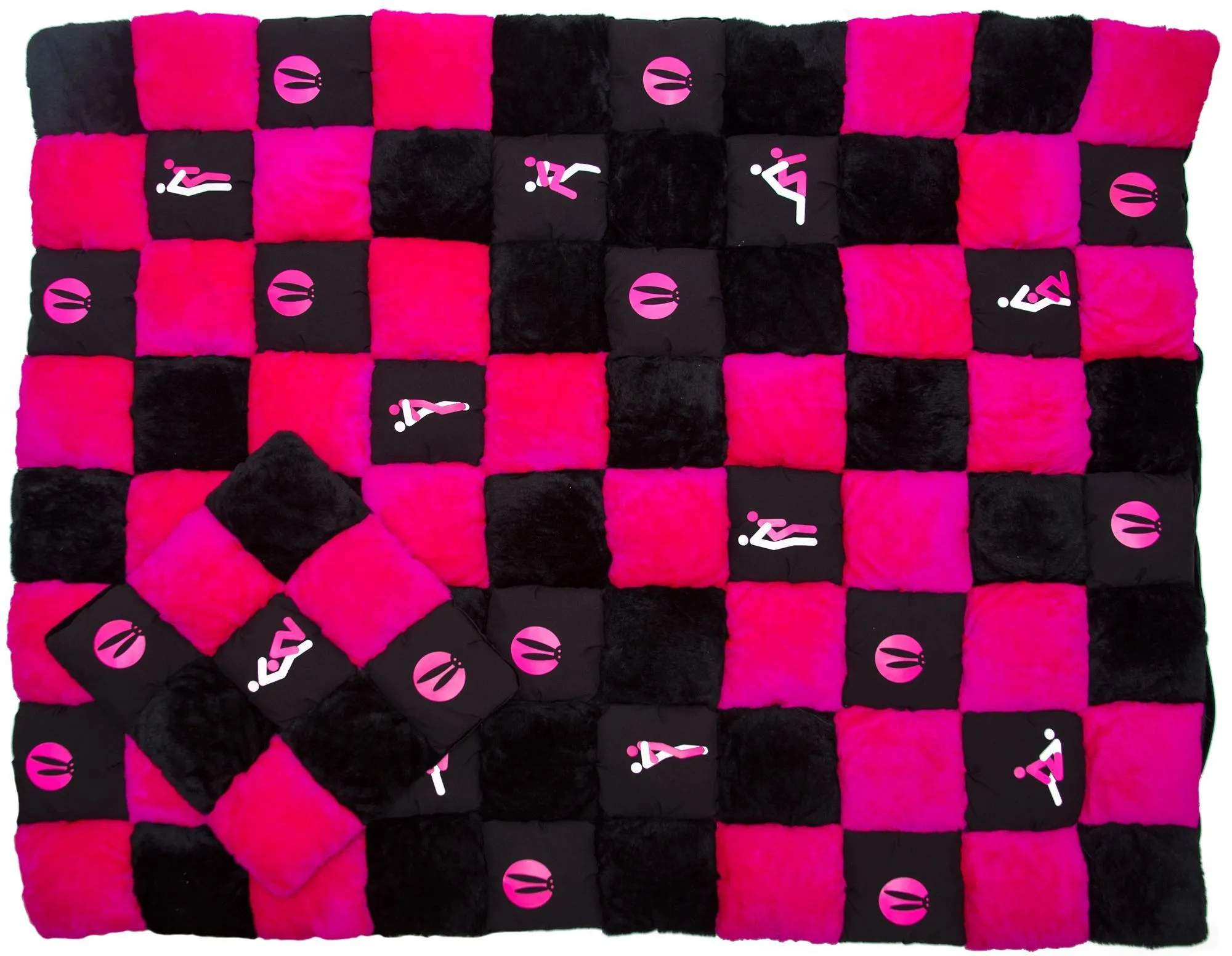 Черный комплект состоит из 2 подушек: большая 1.3 х 1.6 метра, маленькая 0,45 х 0,45 метров.