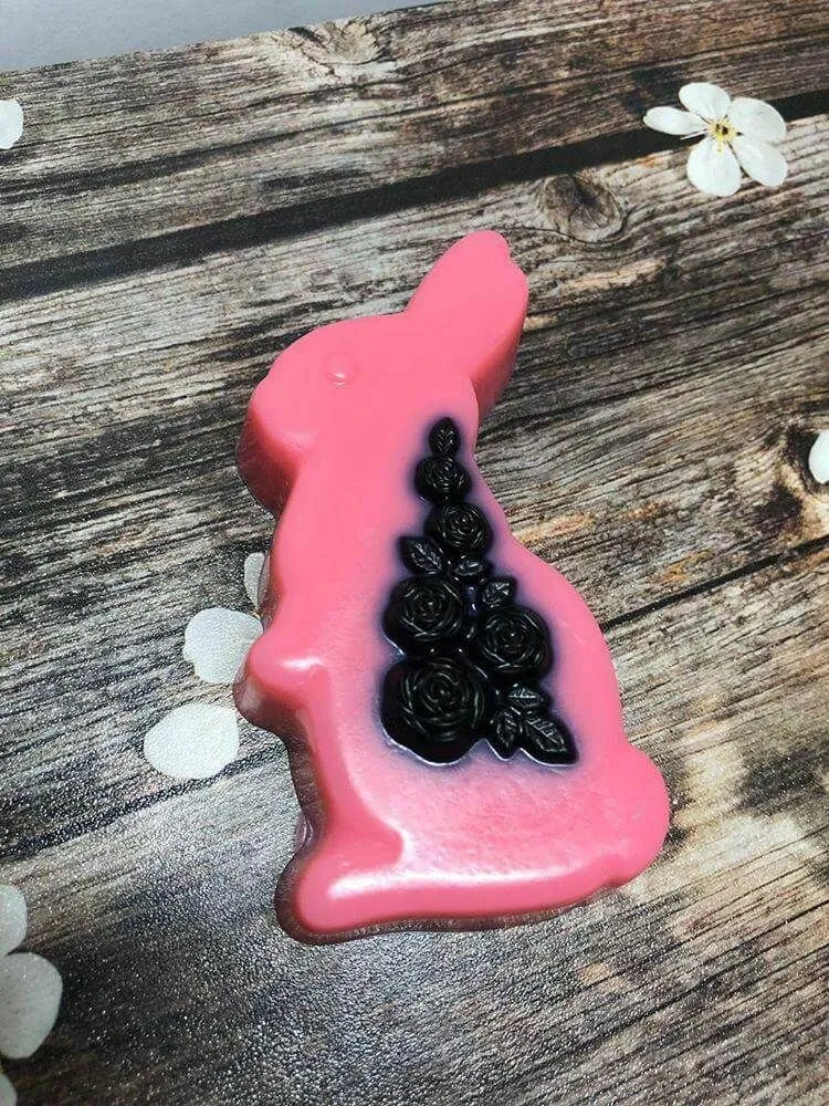 Мыло ручной работы в виде очаровательного розового кролика с цветами станет идеальным подарком для членов Вашей семьи, второй половинки или друзей! Оригинальный дизайн сразу привлекает к себе внимание, яркие цвета радуют глаз, а восхитительный аромат Bubble gum пленяет своей сладостью. Мыло очень хорошо пенится и будет нежно очищать кожу, не пересушивая ее, а даря только приятные ощущения. Оно упаковано в подарочную коробочку и перевязано красивой лентой.