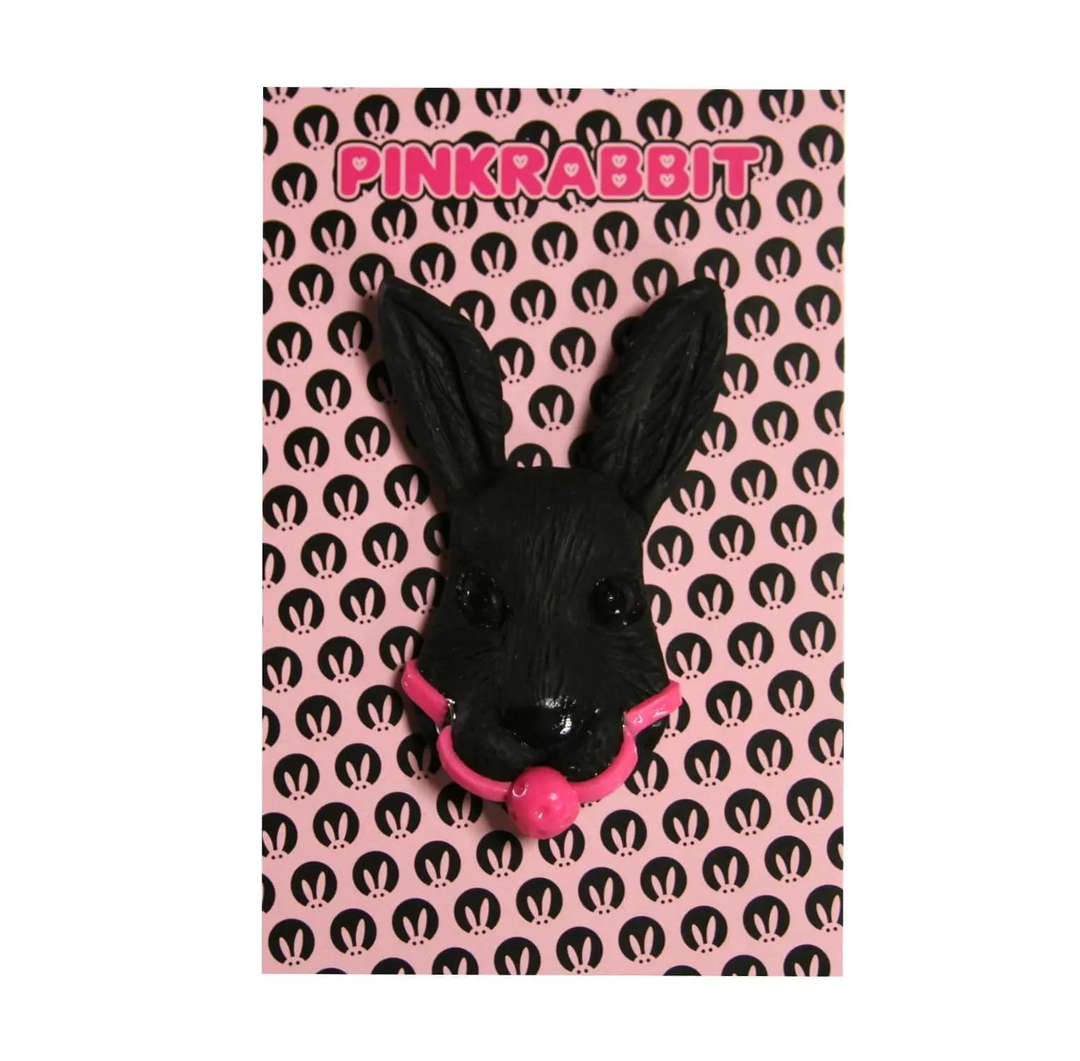 Брошь PinkRabbit Черный кролик с розовым кляпом, на магните