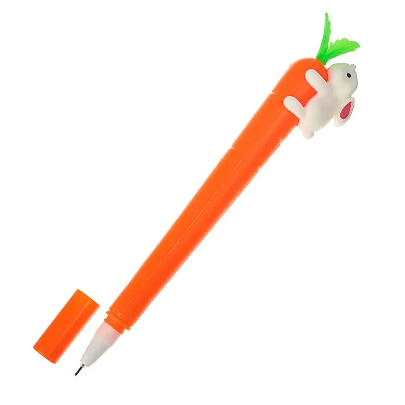 Гелевая ручка в виде морковки с маленьким зайчишкой! Практичный, всегда нужный предмет, которым мы пользуемся каждый день. Поднимает настроение, привлекает внимание. Приятно держать в руках, и писать – одно удовольствие. Ручка-морковка придётся по вкусу и деткам – больше энтузиазма чтоб сесть за уроки. Для взрослых станет оригинальным украшением рабочего стола и приятным напоминанием о человеке, который преподнёс её.