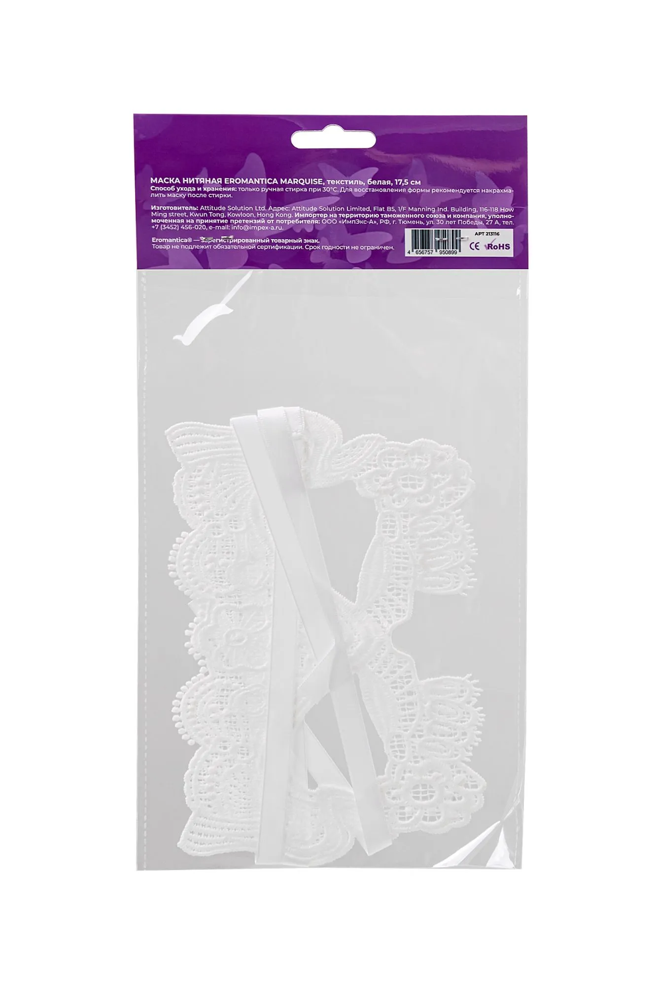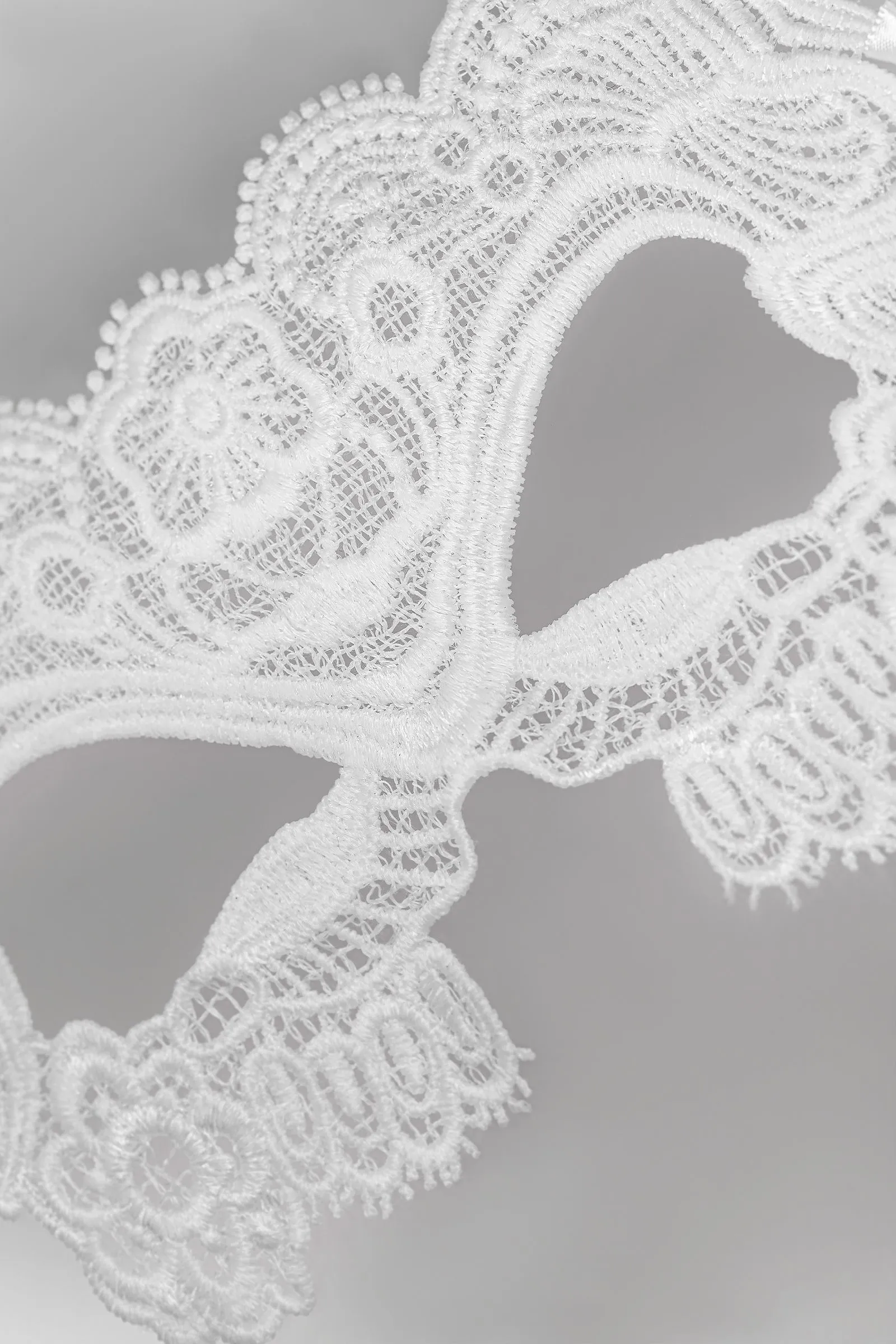 Примерь на себя образ утонченной Маркизы с белой кружевной маской и сделай вашу романтическую встречу незабываемой! Этот пленительный аксессуар станет не только украшением для Тебя, но и сексуальным якорем для Твоего партнера. При бережном уходе (ручная стирка и накрахмаливание) маска надолго сохранит первозданный вид и будет радовать свою обладательницу при каждом ее использовании.