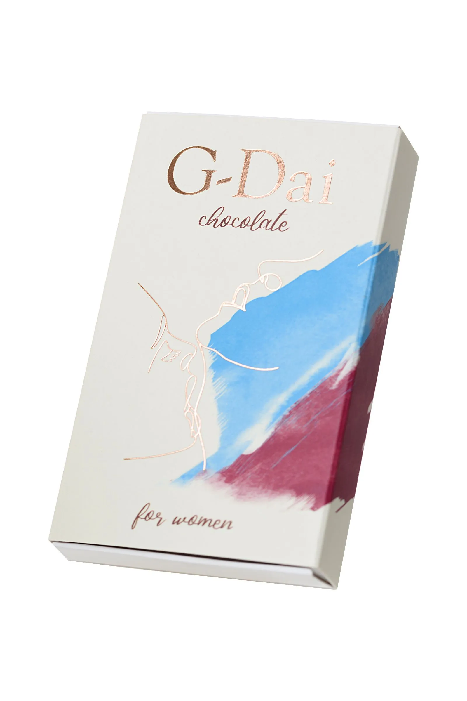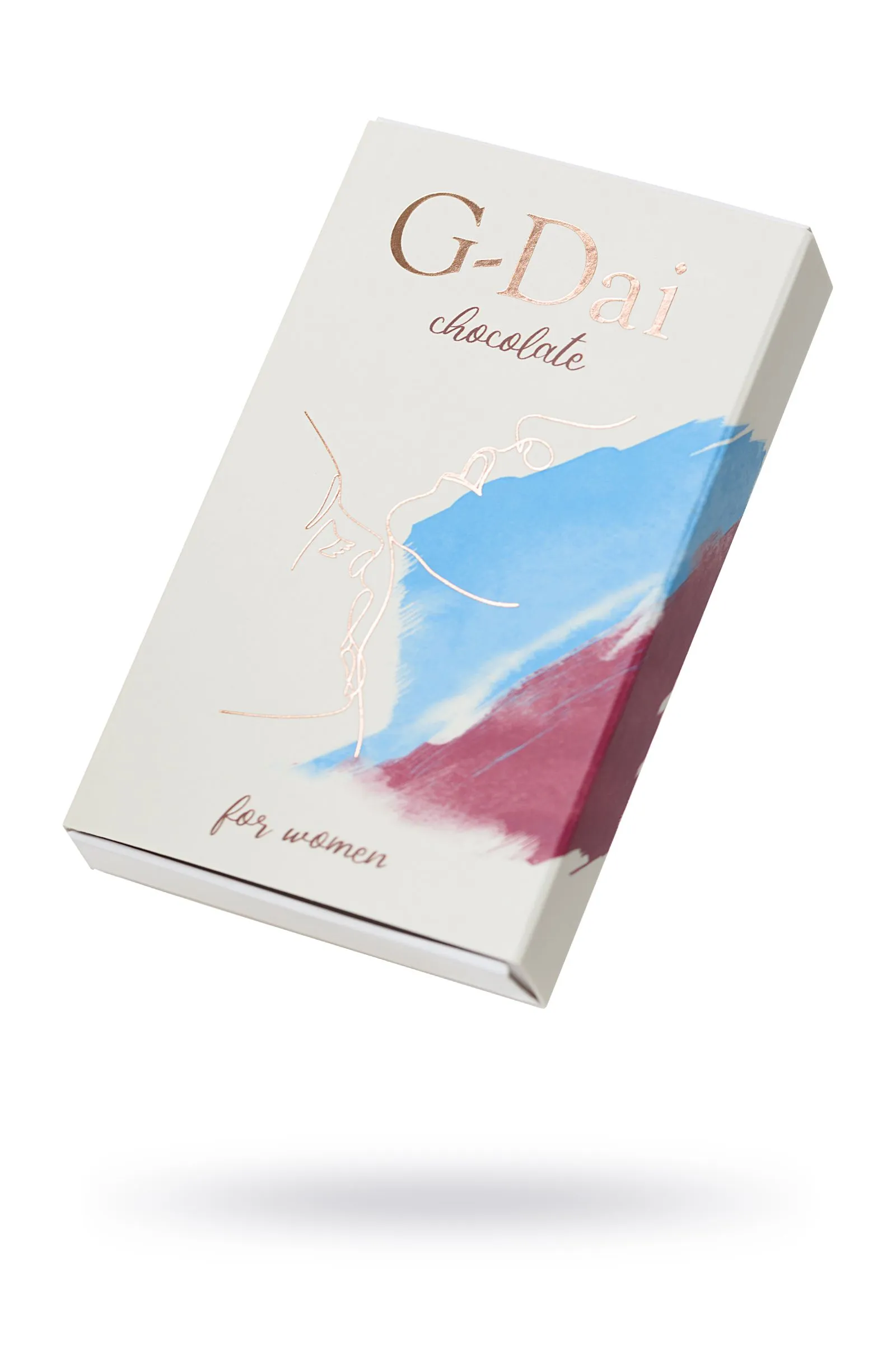 В составе шоколада G-Dai для женщин: темный шоколад Barry Callebaut (содержание какао 54%) и комплекс растительных экстрактов iMix GD. В этом шоколаде применена новая формула сочетания активных веществ, благодаря которой удалось добиться не только последовательного и пролонгированного действия афродизиаков, но и избирательности воздействия на мужчину и женщину. Кроме того, данный купаж афродизиаков наиболее гармонично сочетается со вкусом бельгийского шоколада. Шоколад G-Dai for women : настраивает на удовольствие; повышает либидо; способствует более ярким ощущениям во время секса. Достигается это благодаря содержащимся в его составе экстрактам афродизиаков – гриффонии, маки перуанской, семян какао. Гриффония «запускает» гормон счастья – серотонин, мака усиливает влечение, а экстракт семян какао делает мир цветным и сказочно прекрасным! Подробно о действии афродизиаков: Гриффония простолистная (или Бандейра простолистная, лат. Griffonia simplicifolia) представляет собой кустарник, используемый в традиционной народной медицине западной Африки. Местное население применяет семена гриффонии в качестве мощного афродизиака, стимулирующего эмоциональный и энергетический подъем. Дело в том, что Гриффония является крупнейшим источником вещества 5- гидрокситриптофан (5-НТР). Ее семена содержат до 20% 5-НТР по весу. Наше тело производит 5-НТР из триптофана, другой аминокислоты, найденной в белковых продуктах: мясо, курица, рыба, молочные продукты, бобовые и орехи. После поглощения 5-HTP переступает гематоэнцефалический барьер и превращается в серотонин - нейротрансмиттер, который играет немаловажную роль в регулировании настроения, тревоги, аппетита и сна. Может вызвать ощущение радости или даже сильной эйфории. Неудивительно, почему он называется «гормоном счастья». При стрессах, тревоге, эмоциональных расстройствах возникает дефицит серотонина, поскольку большая часть триптофана метаболизируется в другие соединения, а еще меньше поступает в организм при несбалансированном употреблении белков и углеводов. При этих условиях триптофан недоступен для биосинтеза серотонина, а вот для 5-гидрокситриптофана таких проблем не существует. 5-НТР хорошо абсорбируется сублингвально, т.е. в ротовой полости. И шоколад хорошо этому способствует. Мака перуанская – это известный многим сильный афродизиак. Обилие минералов, жирных кислот, присутствие цинка, йода позволяет нормализовать баланс половых гормонов, повысить настроение, усилить сексуальное возбуждение. Экстракт какао относится к биологически активным соединениям, которые содержатся в какао-продуктах. Эти соединения включают флавонолы, процианиды и эпикатехин. Хотя эти молекулы содержатся не только в какао, экстракт какао содержит особенно высокие уровни эпикатехина по сравнению с другими растительными продуктами. Употребление эпикатехина увеличивает выработку оксида азота, молекулы, которого расширяют кровеносные сосуды и улучшает кровоток. Состав: Какао тертое c содержанием какао 54%, смесь растительных экстрактов «iMix GD» (гриффония, семена какао, мака пура, кофеин), какао масло, тростниковый сахар, эмульгатор (соевый лецитин). Противопоказания: не рекомендуется применять при наличии аллергии на компоненты в составе, людям с сахарным диабетом. Способ применения: Наибольший эффект достигается при упо