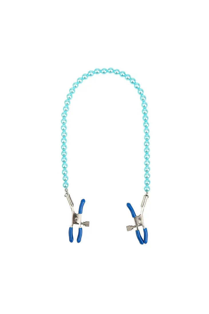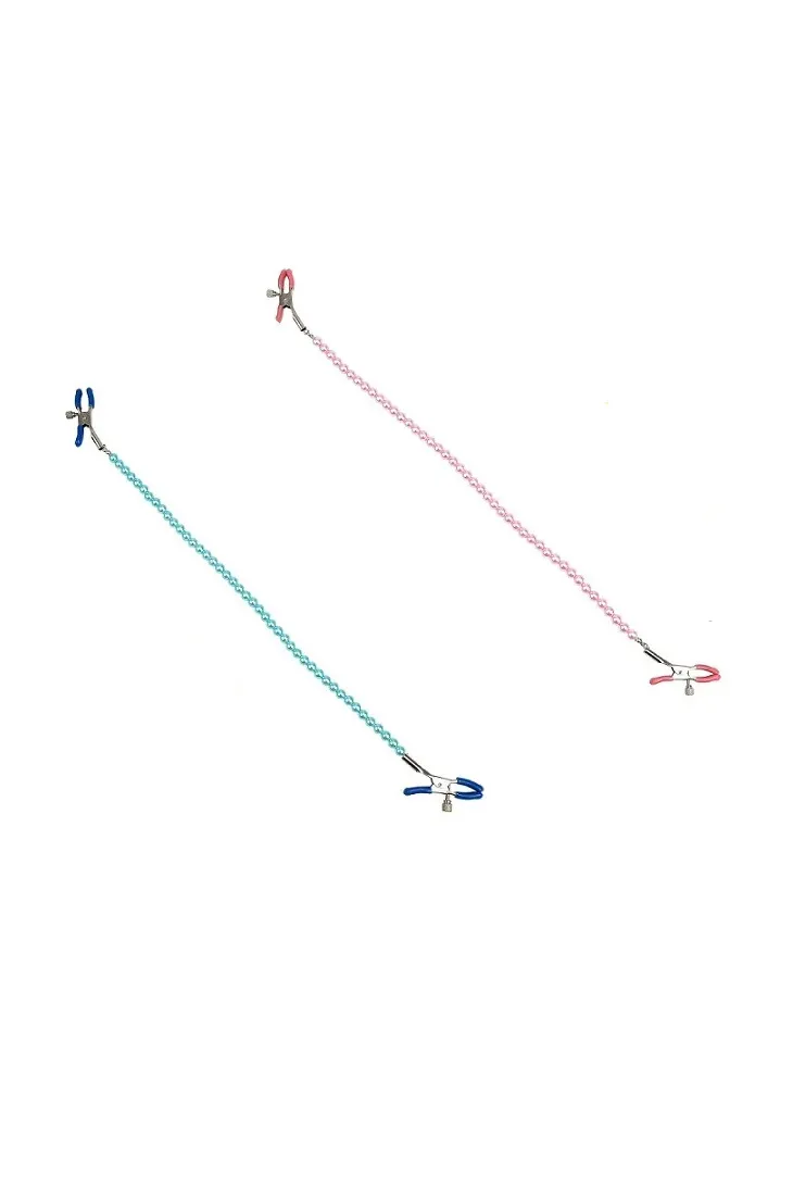 Зажимы на соски с цепочкой из бусин служат дополнительным стимулятором одной из самых чувствительных зон.Включают в себя 2 полностью регулируемых многофункциональных зажима. Имеют мягкие наконечники,между собой зажимы соединены цепью из бусин, которая одновременно служит своебразным утяжелителем для дополнительных ощущений.