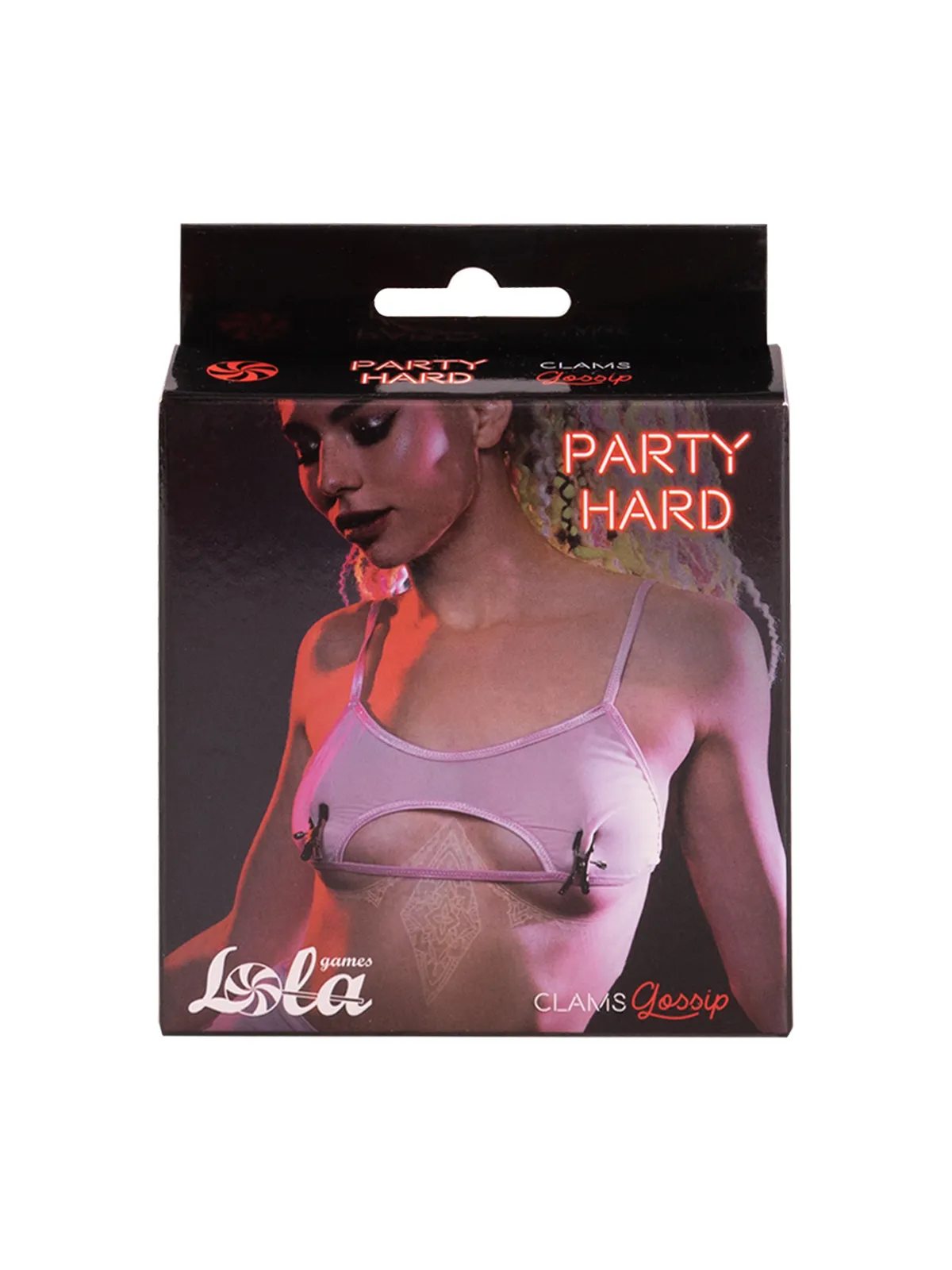 Зажимы для сосков коллекции «Party Hard» - проводник в мир страсти и наслаждения! Они подарят вам неожиданно приятные ощущения сладкой боли и одним своим видом подогреют желание в вашем партнере! Разнообразь свою сексуальную жизнь. Зажимы подходят как для прелюдий, так и для БДСМ игр.