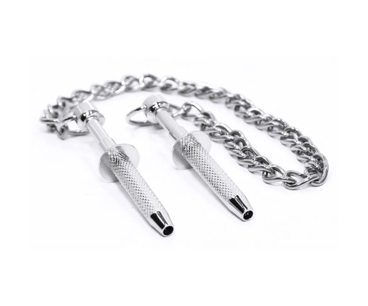 Зажимы на соски стали неотъемлемым атрибутом в BDSM практике. Данные зажимы утяжеляют грудь и соединяют соски металлической цепочкой, стимулируя их во время мастурбации или полового акта. Зажимы сделаны из безопасной для тела высококачественной хирургической стали. Их можно кипятить и протирать спиртосодержащими растворами для дезинфекции.
