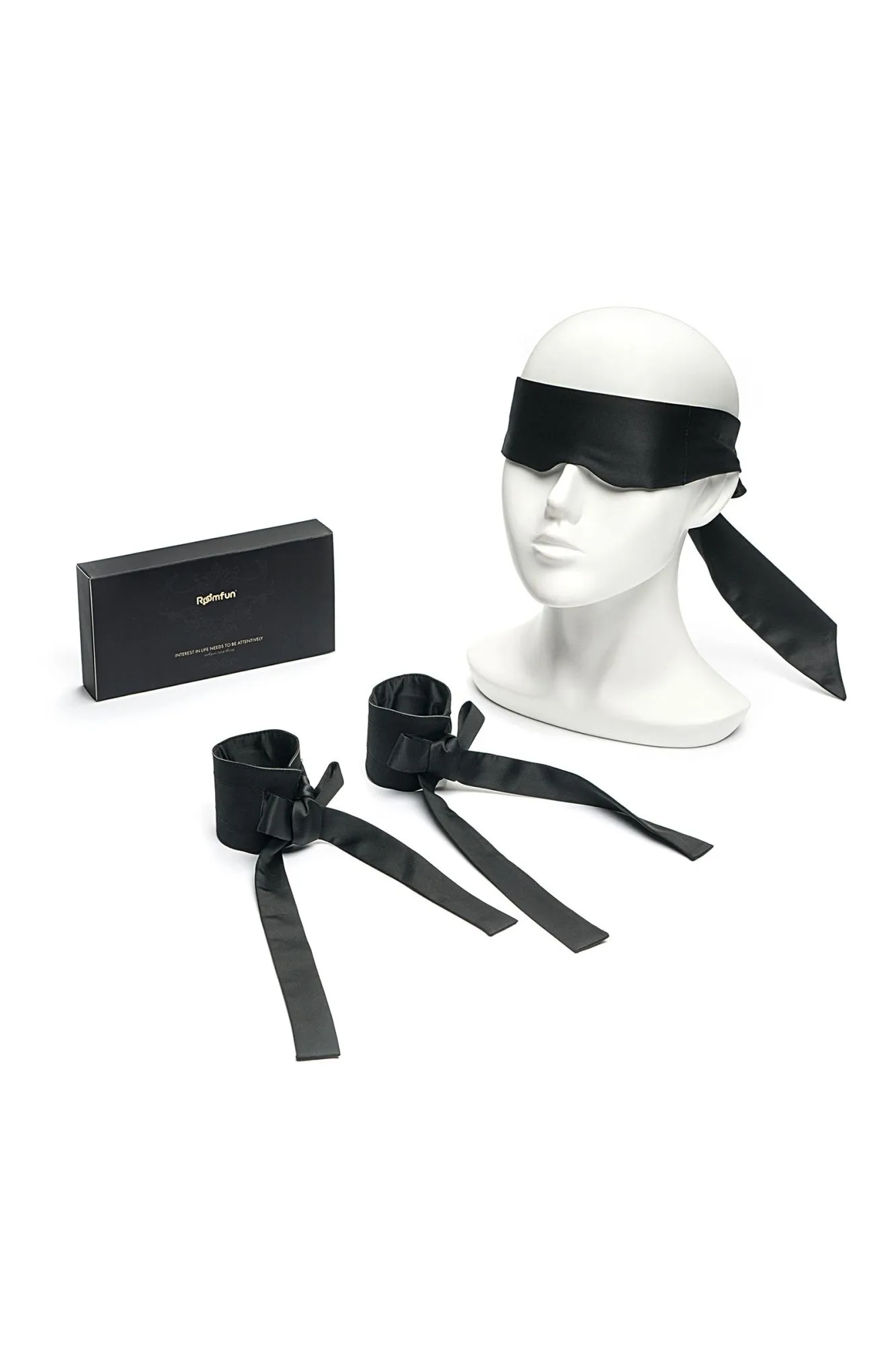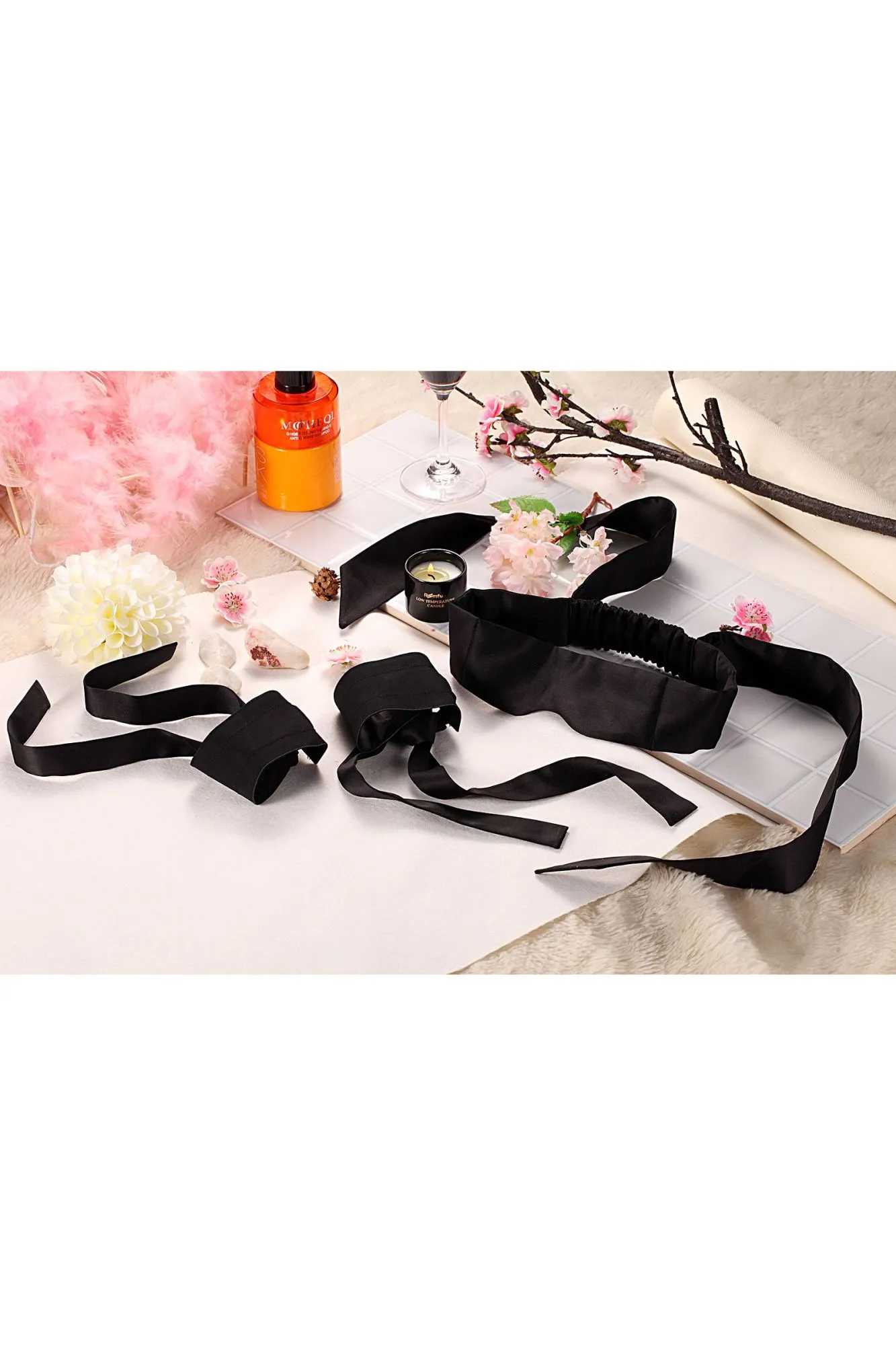 Набор для фиксации ,который позволет партнерам полностью довериться друг другу и стать ещё ближе.Пусть этот набор все скажет за Вас, создаст гармонию между чувствами власти, покорности и обоюдного наслаждения. Вы с партнером буквально начнете говорить на одном языке! В набор входит: повязка на глаза,наручники ввиди лент.