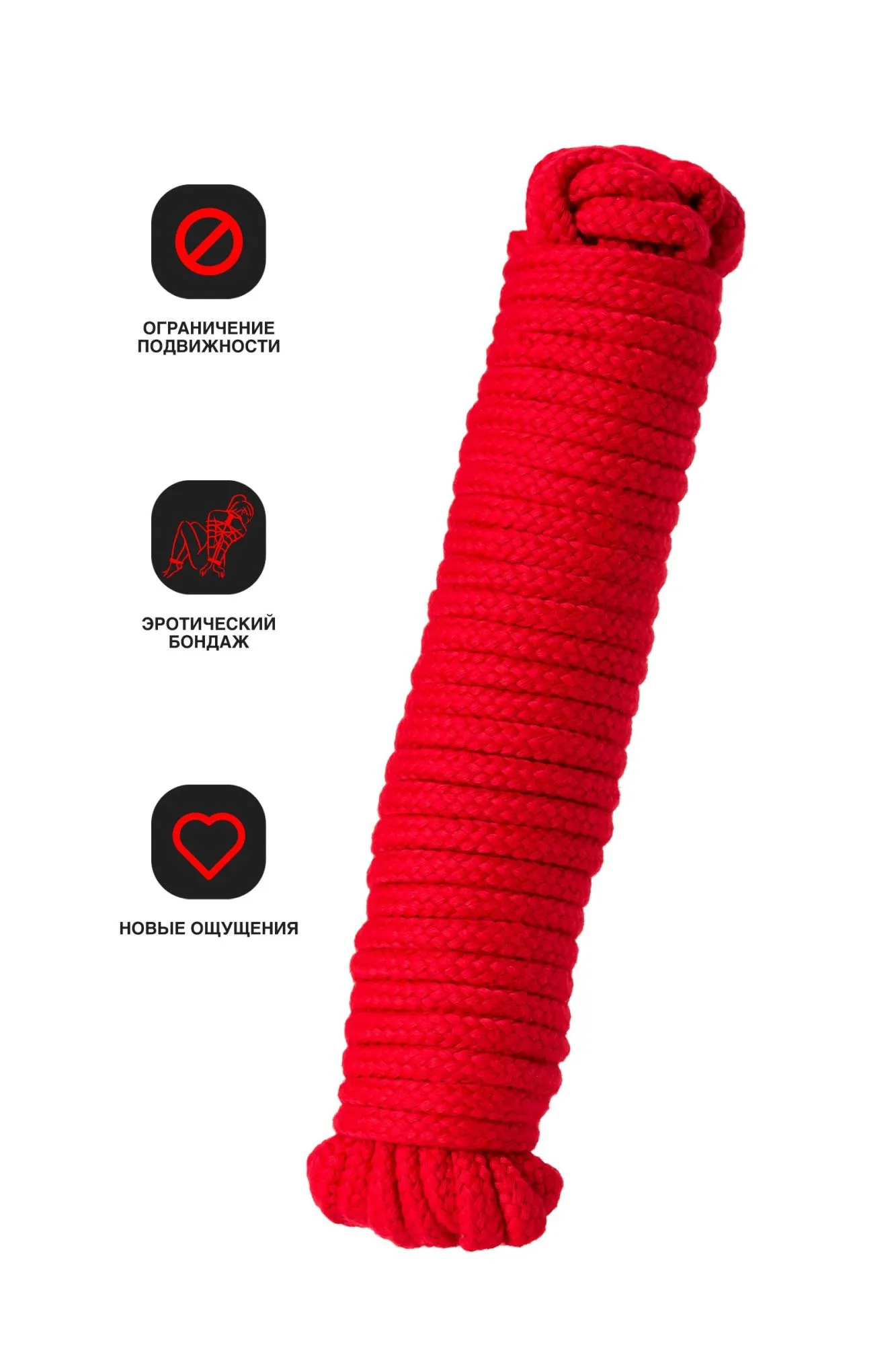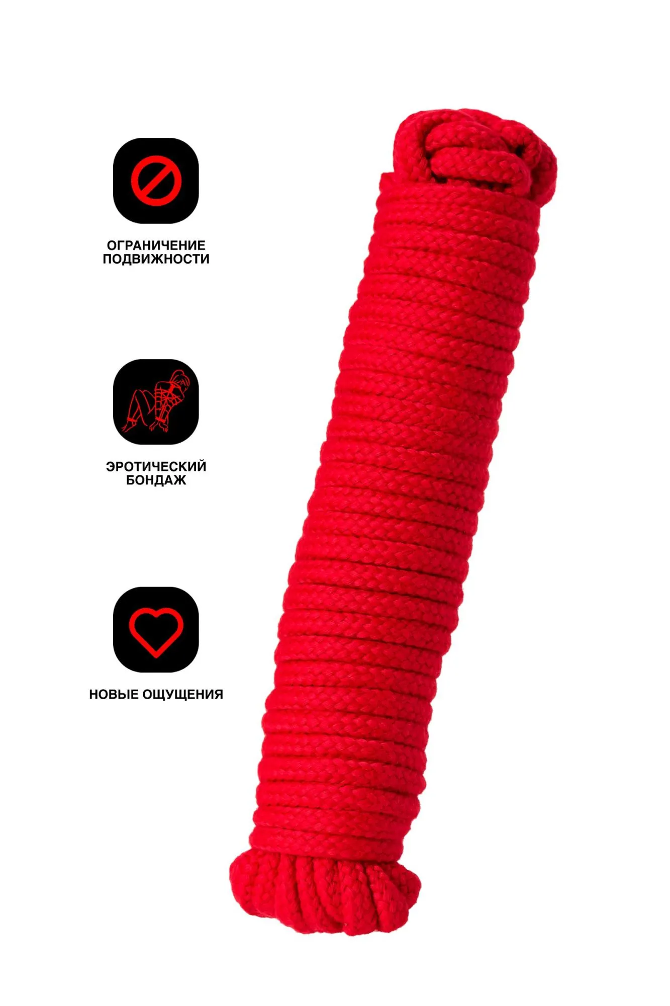 —Веревка для бондажа Штучки-дрючки, текстиль, красная, 10 м