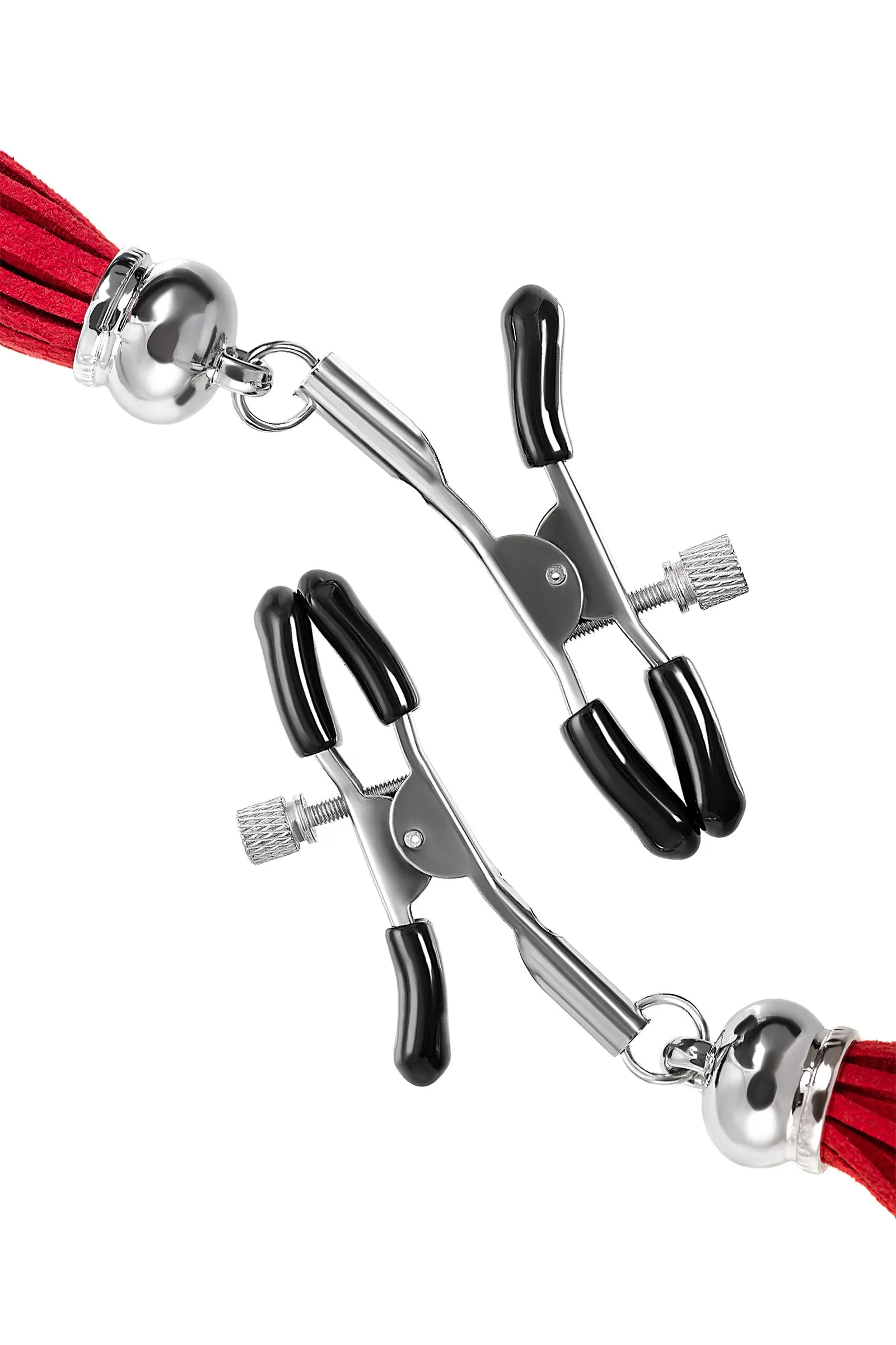 Хотите усилить ощущения от страстных игр с партнером? Увеличить степень возбуждения до невозможного можно с помощью зажимов-прищепок ручной работы от Рecado. Невероятно сексуальный аксессуар пробудит фантазию и повысит чувственность эротических зон. Мягкие резиновые накладки оберегают соски от повреждений. Металлический винт регулирует степень сжатия зажимов: от нежно-приятного до сильно-грубого. На концах черные резиновые наконечники, для безопасного воздействия на нежные участки тела. Компактный размер удобно вмещается как в женскую, так и в мужскую руку. Кисточки из натуральной замши не только визуально украшают эротический атрибут, но и еще утяжеляют его. Для самых смелых и искушенных любителей доминировать и подчиняться. ● Ручная работа. ● Надежная высококачественная фурнитура. ● 100% натуральная замша. ● Общая длина зажимов 14 см, длина кисточки 8,5 см. ● Не требуют специального ухода.