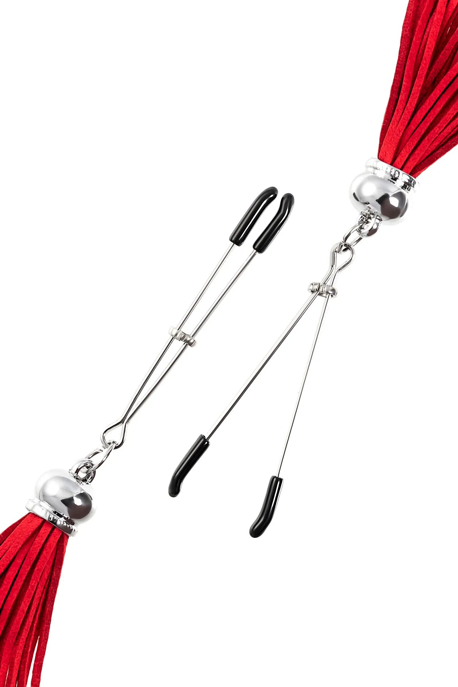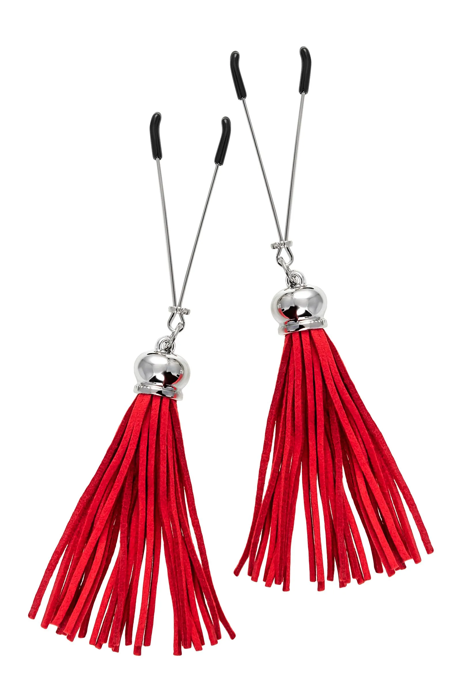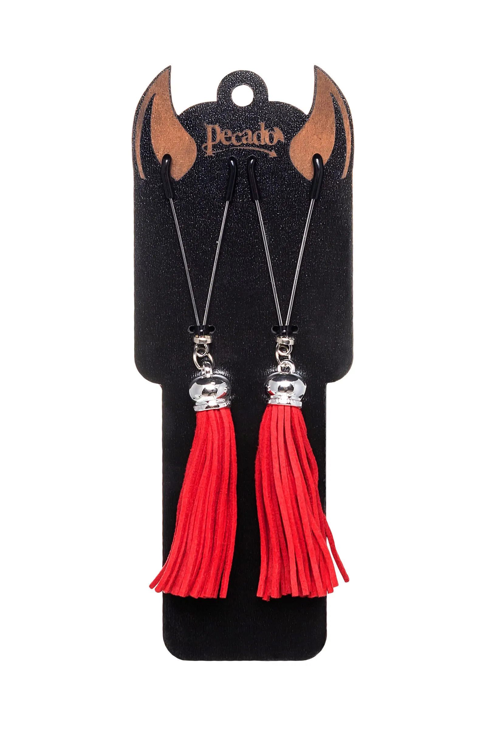 Попробуйте новые, дерзкие ощущения глубокого наслаждения! Зажимы-вилки от Pecado гарантируют смешение ярких чувств от тактильного контакта с нежной кожей сосков. Зажимы выполнены из высококачественных материалов. Металлическая часть компактная, приятная на ощупь. На концах черные резиновые наконечники, для безопасного воздействия на эрогенные зоны. Интенсивность сжатия аксессуара регулируется миниатюрными колечками. В зависимости от личных предпочтений и сценария игры, можно выбрать легкое пощипывание, или сильное сдавливание. Бахрома из натуральной замши, в насыщенном красном цвете , добавляет манящую красоту смелому атрибуту. При каждом соблазнительном покачивании груди, кисточки движутся в пикантном ритме. Также подходит для стимуляции и возбуждении в области половых губ и клитора. ● Ручная работа. ● Надежная высококачественная фурнитура. ● 100% натуральная замша. ● Не требуют специального ухода.