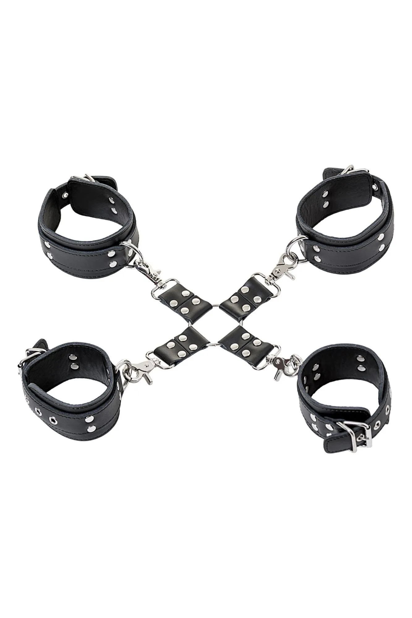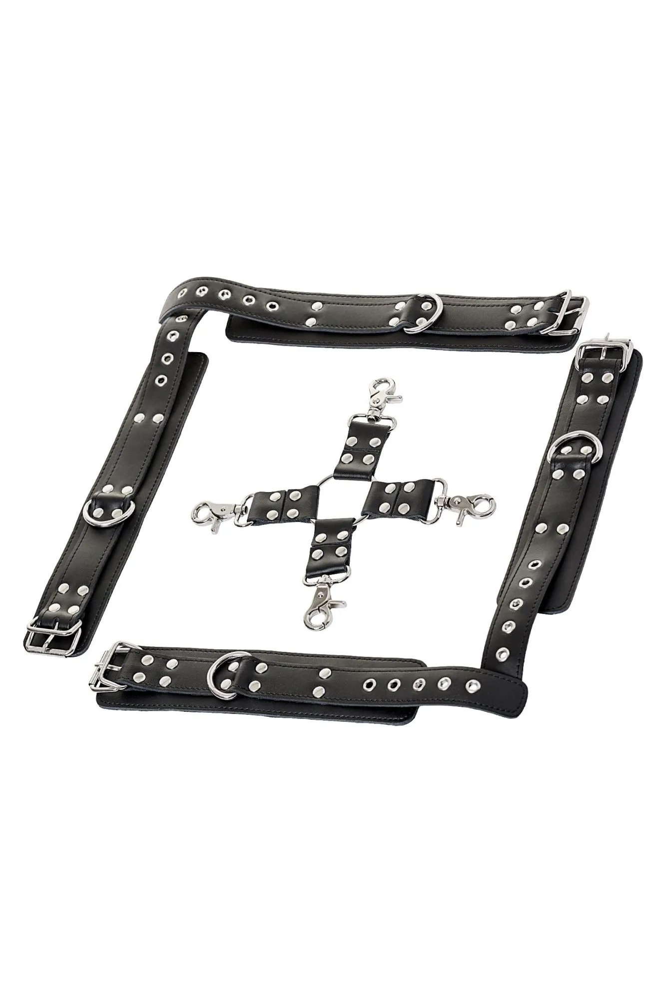 Такой комплект считается универсальным девайсом для ограничения движений. Он может использоваться как отдельная сцепка для рук или ног, так и в качестве общего бондажа рук и ног. Конструкция легко регулируется, а отстёгивающиеся элементы дают возможность не ограничивать свою сексуальную фантазию и фиксировать партнёра в различных позах.