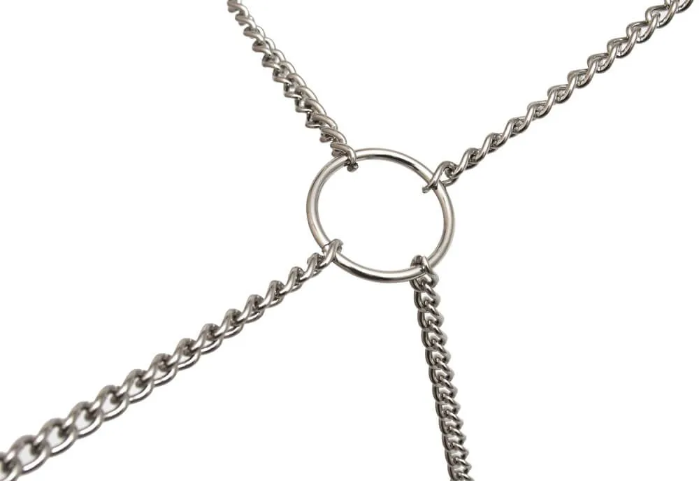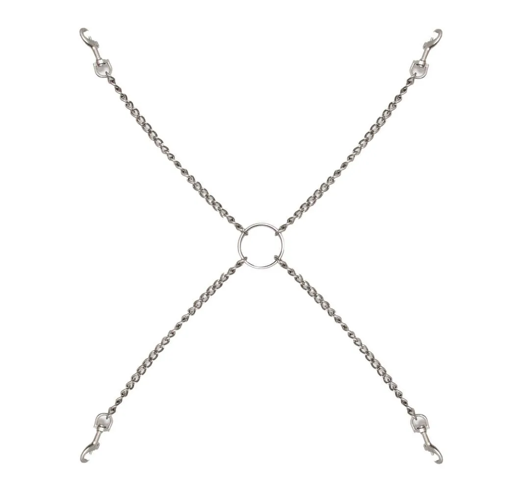 Цепь с центральным кольцом и четырьмя карабинами от компании "Подиум" может использоваться для соединения наручников и поножей, а также других девайсов БДСМ-тематики. Она выполнена из прочного металла, длина 25 см.