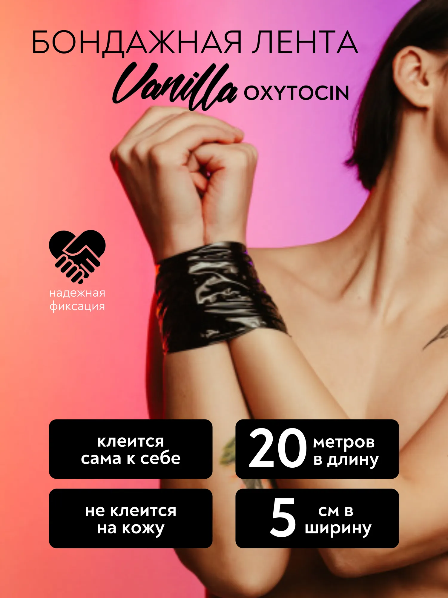 Бондажная лента Oxytocin обеспечит прочную и надежную фиксацию, позволяя экспериментировать с различными позами и сценариями. Длиной в 20 метров и шириной в 5 сантиметров, бондажная лента подойдет для множества различных игр и сценариев, будь то ограничение движений или создание соблазнительных нарядов. Лента прилипает только к своей поверхности, что исключает риск повреждения кожи, волос или одежды. Она не оставляет липких следов, легко и безболезненно снимается, что обеспечивает комфортное использование даже для новичков. Легкость в применении и отсутствие необходимости в дополнительных аксессуарах делают ленту идеальным выбором для тех, кто хочет быстро и легко добавить элемент бондажа в свои интимные моменты.