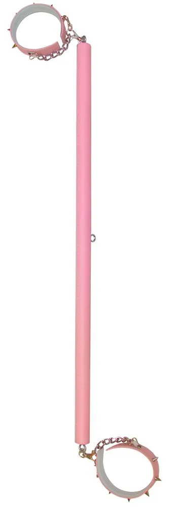 Наножники с распоркой позволят Вам прочно зафиксировать своего партнера в нужной позиции. Используя этот аксессуар, Вы сможете без труда обездвижить своего партнера, сломить его сопротивление и сполна насладиться его покорностью. Наножники выполнены из кожи нежного розового цвета и имеют внутри мягкую подкладку для более комфортного ношения. Их можно подогнать под нужный размер при помощи цепочки. На распорке есть специальное колечко, к которому можно пристегнуть дополнительные аксессуары.