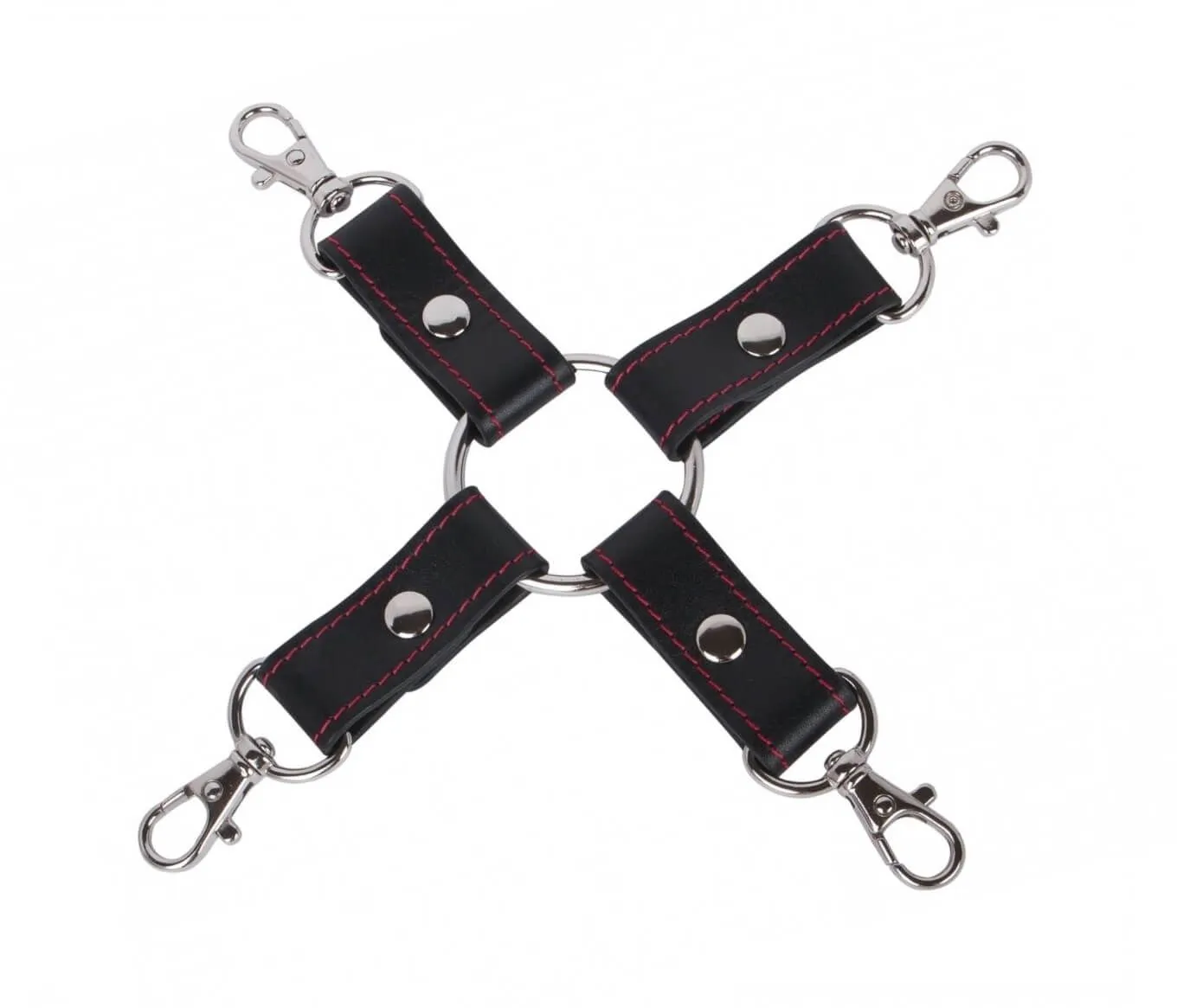 Кожаная сцепка с четырьмя карабинами от бренда Fire Horse предназначена для соединения различных БДСМ аксессуаров. Она выполнена из натуральной черной кожи и металла и декорирована прострочкой контрастного красного цвета. Стяжка отличается достаточной прочностью, позволяющей ей выдержать любые проявления неповиновения со стороны партнера. Она надежно зафиксирует руки или ноги непокорного и позволит Вам подойти к его воспитанию со всей ответственностью. Сцепка проста в использовании и надежна, поэтому с ней любая игра с элементами БДСМ будет безопасна.