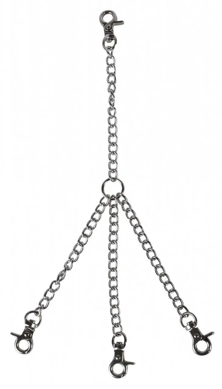 Сцепка с 4 карабинами от бренда Fire Horse предназначена для соединения различных БДСМ аксессуаров. Она позволит Вам соединять наручники, поножи или ошейники для придания нужной позы партнеру. Сцепка выполнена из металла, поэтому отличается достаточной прочностью, позволяющей ей выдержать любые проявления неповиновения.
