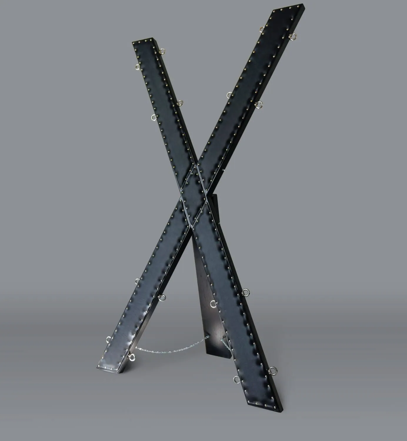 Крест из массива дуба высотой 210 см обязательно по достоинству оценят любители острых ощущений во время БДСМ игр. Преимущество креста в качестве бондажного приспособления заключается в том, что на нем возможно очень надежно обездвижить партнера, при этом все части его тела будут полностью открыты и доступны для различных манипуляций. Крест выполнен из дерева и обит натуральной кожей черного цвета, на нем есть несколько специальных колец из металла, при помощи которых будут фиксироваться руки и ноги подчиняющегося.