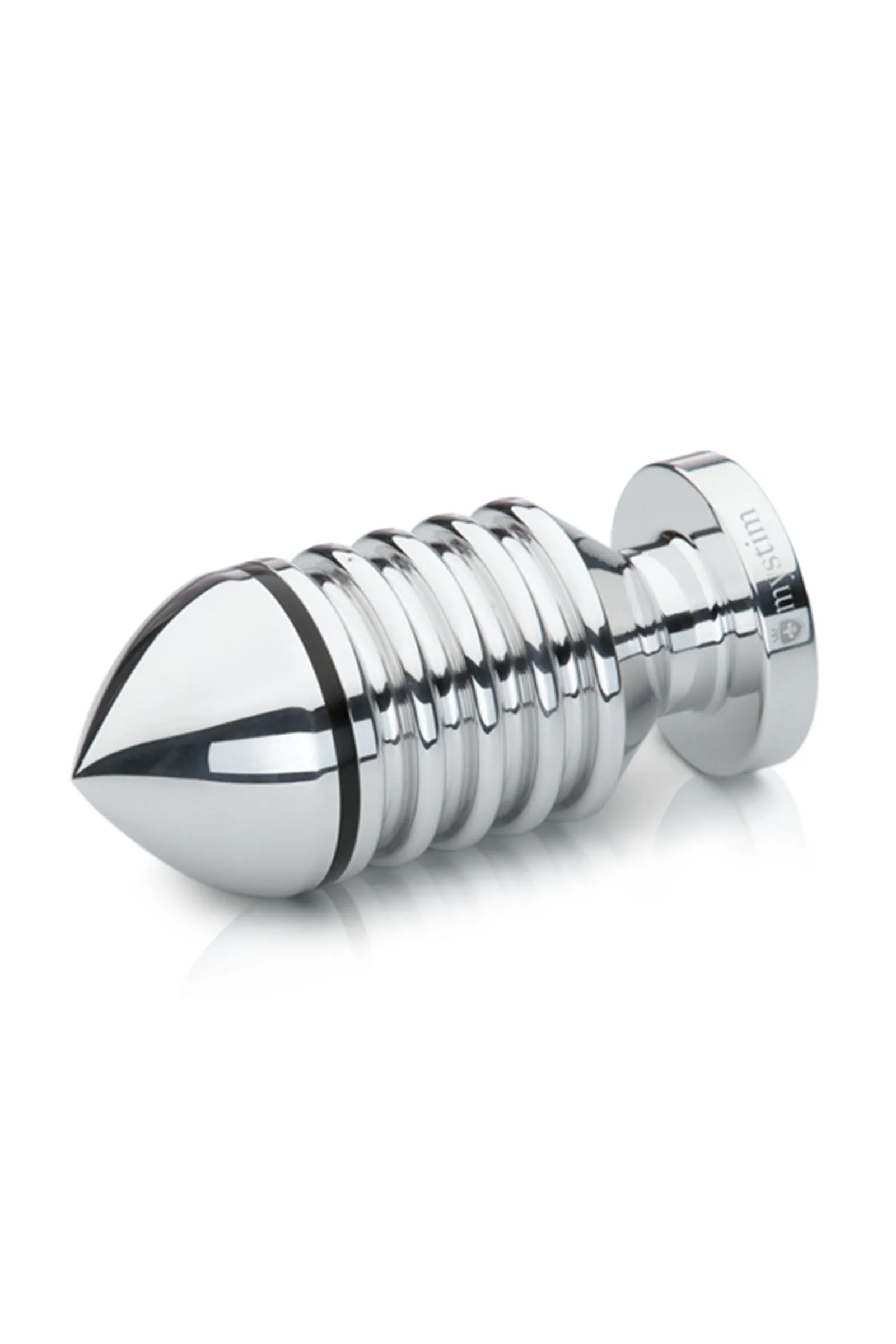 —Анальная пробка Mystim Hector Helix L, электростимуляция, хирургическая сталь, серебряная, 11,5 см,