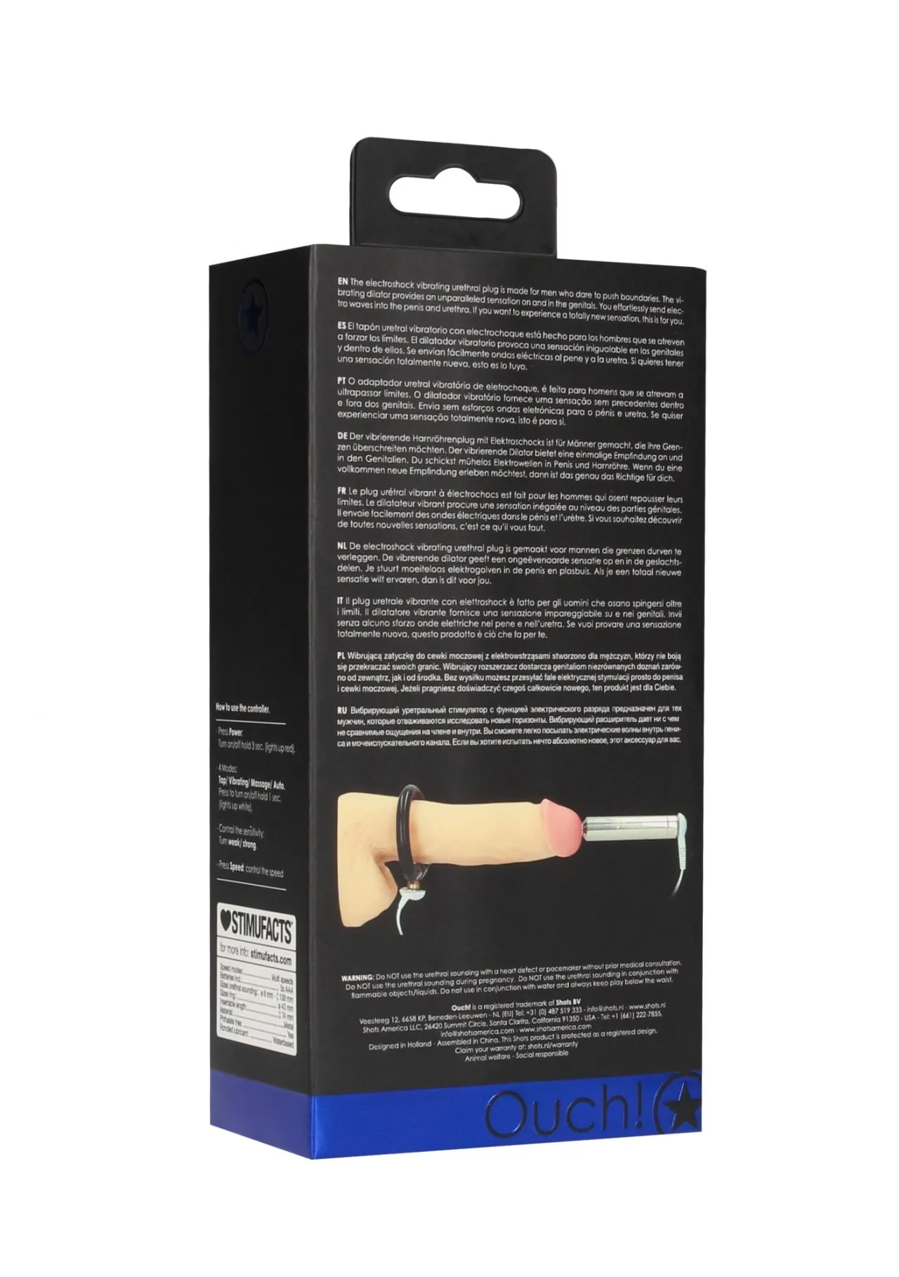Набор из уретрального плага, эрекционного кольца и блок питания для электростимуляции.