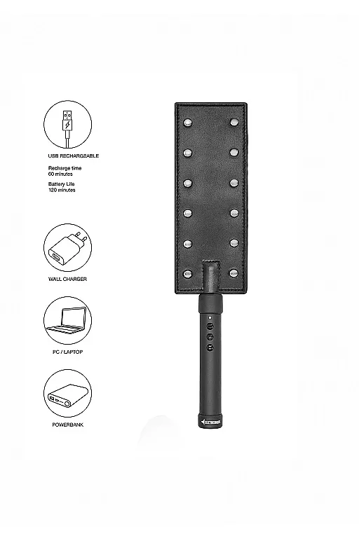 E-stim Paddle - безпроводной ударный девайс, чаще всего использующийся для работы по ягодицам, и иногда — по самым крупным мышцам верха бедра, с электростимуляцией.