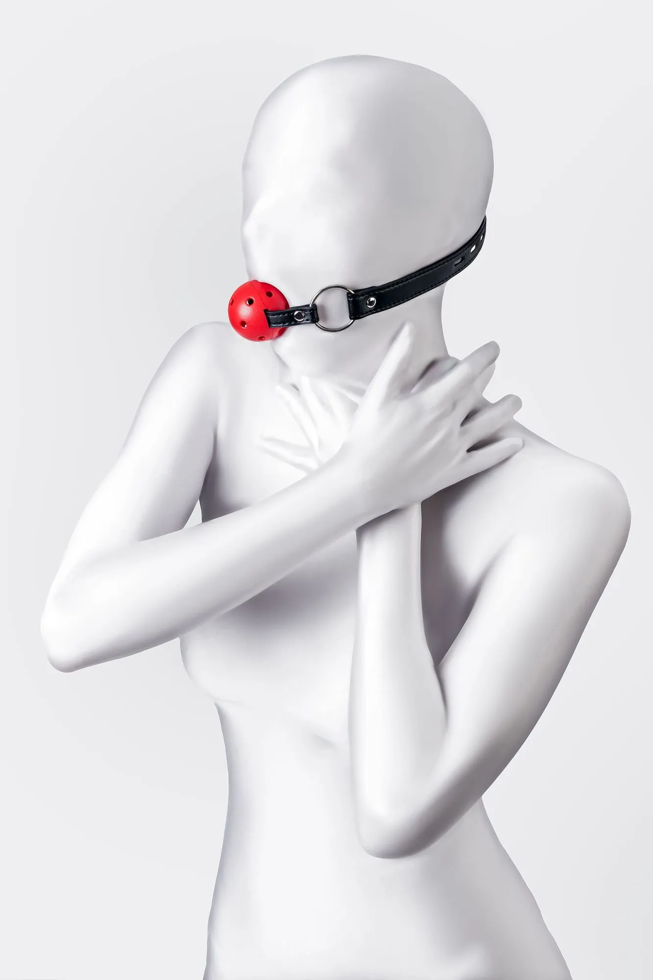 Искусство красноречивого взгляда – все что остается, ведь невозможно произнести ни слова в этом кляпе – только слушать и подчиняться. Можно скрежетать зубами по пластику, но вдруг Доминант рассердится и накажет еще сильнее? Специальные отверстия для воздуха делают ношение кляпа безопасным и комфортным. Удачное сочетание красно-черного цвета и металлической фурнитуры делает образ сексуальным и загадочным. Ремешок фиксируется на голове металлической пряжкой и подходит для любого размера головы. Дополните образ аксессуарами той же расцветки, чтобы погрузиться в атмосферу классической БДСМ-игры. Материал: PU кожа, пластик Цвет: красно-черный Общая длина: 64 см Диаметр кляпа: 4,5 см