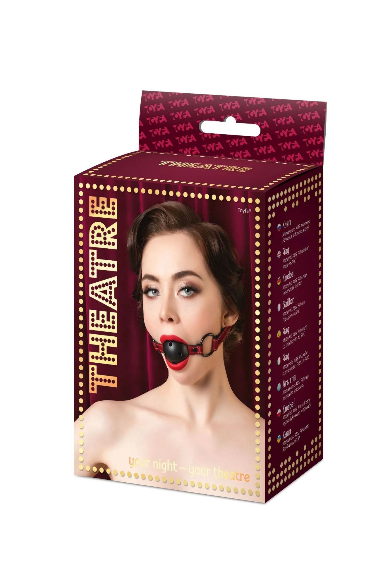 Театр – всегда обольщение и восхищение. Играйте и подчиняйтесь красиво! В этом поможет классический круглый кляп с отверстиями для доступа воздуха на шикарном ремешке из лакированного материала благородного винного цвета. Идеально сочетается с ошейником винного цвета. Размер подходит для использования любым партнером и легко регулируется пряжкой. Общая длина: 65 см Ширина ремешка: 2 см Диаметр кляпа: 4,5 см Материал: экокожа, металл, пластик В фотосессии на модели использованы пэстис Theatre 705006