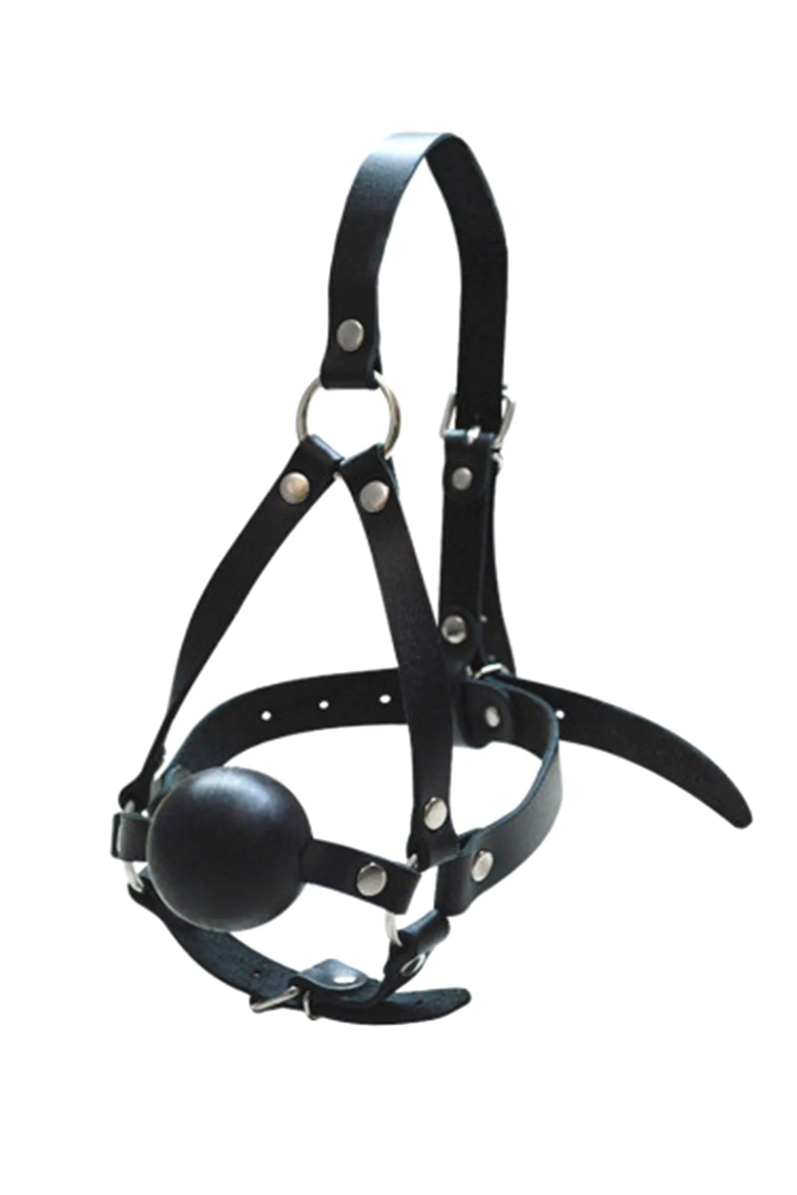 Кляп-шар со сбруей на голову, кожа, черный