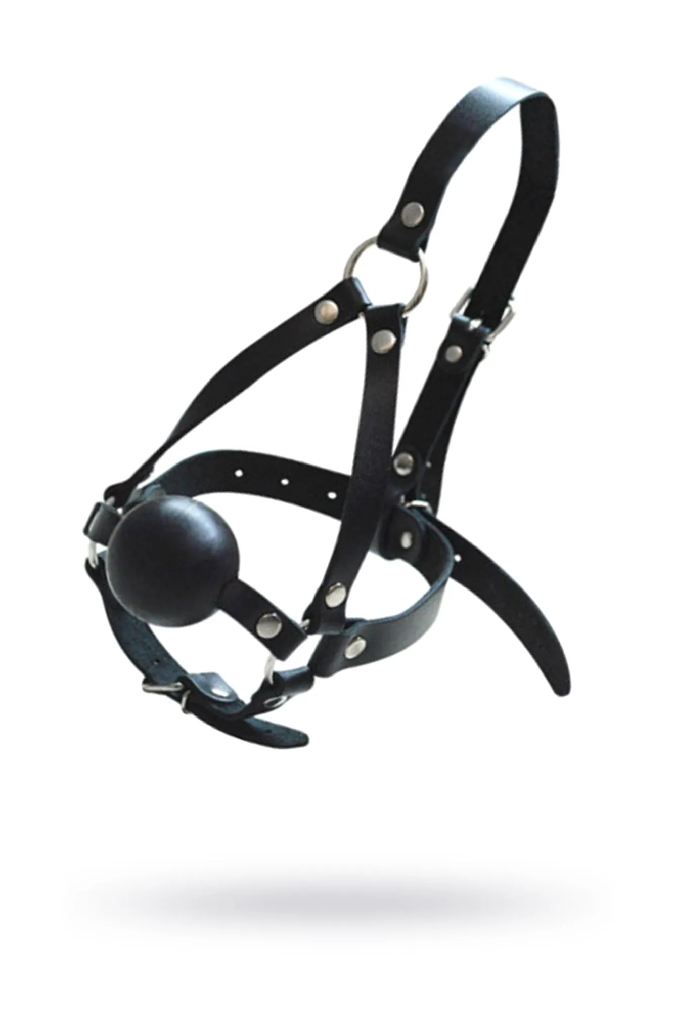 —Кляп-шар со сбруей на голову, кожа, черный