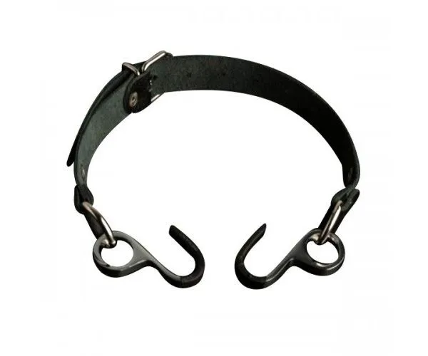 Кляп выполнен из натуральной кожи черного цвета, металлические крючки покрыты полимерным материалом. У крючков округленные кончики, поэтому они не доставят излишнего дискомфорта.