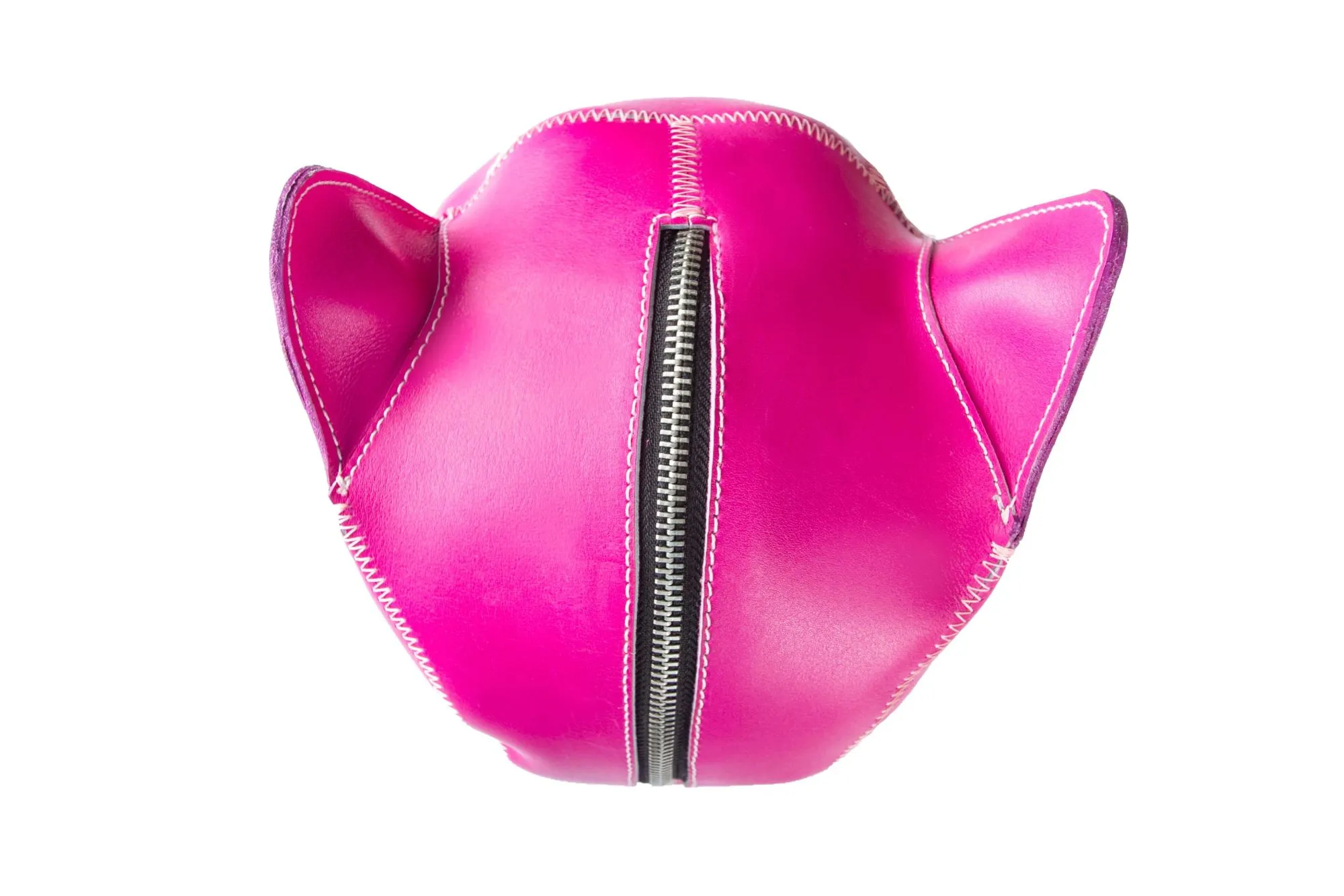 Женский шлем "Черная пантера" от бренда Beastly сделан из натуральной кожи розового цвета и оснащен длинной молнией на затылке. Он неподшитый и плотно садится на голову. У шлема есть прорези для глаз и только два небольших отверстия под носом, поэтому дыхание будет частично ограничено.