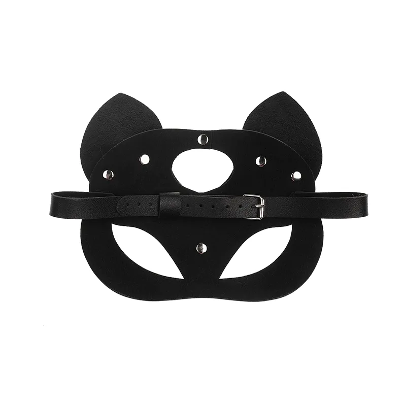 Маска кошки из экокожи чёрного цвета отлично дополнит ролевой костюм кошки или другой эротический образ в стиле БДСМ.