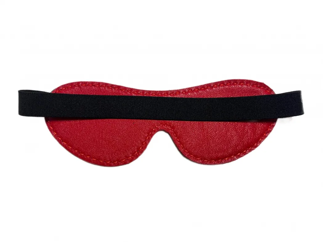 Маска из натуральной кожи на резинке. Можно испльзовать как двустороннюю: одна сторона  выполнена из лаковой кожи черного цвета, а вторая из красной перчаточной кожи,очень нежной и приятной к лицу. Декорирована маска контрастной красной строчкой. Благодаря эластичной резинке, размер универсальный, ширина резинки 2см.