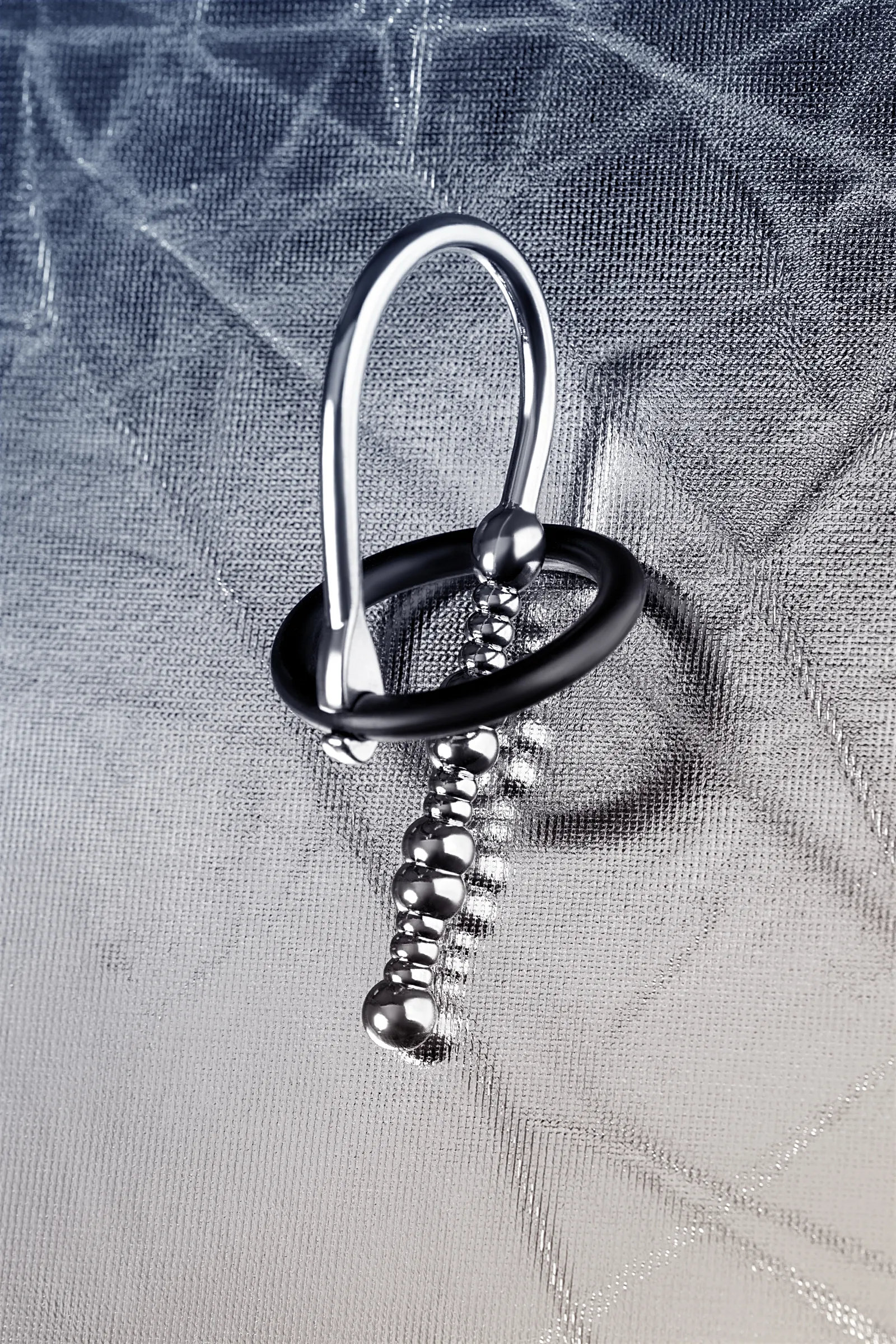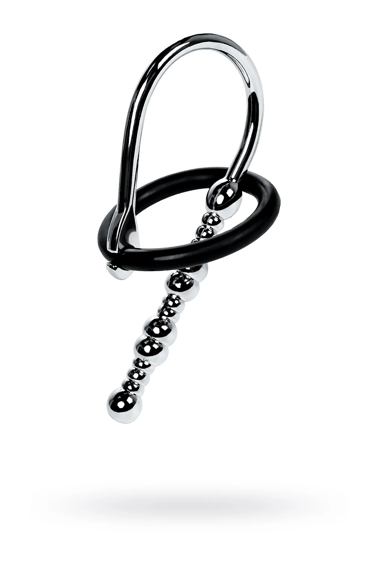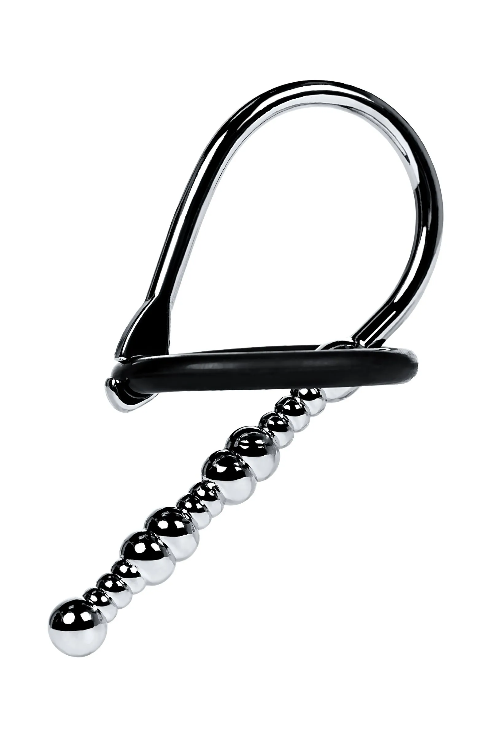 Уретральный плаг в форме бусин различного диаметра для стимуляции уретры. Мягкое кольцо для фиксации на головке. В комплект входят 2 кольца диаметром 25 мм и 30 мм.