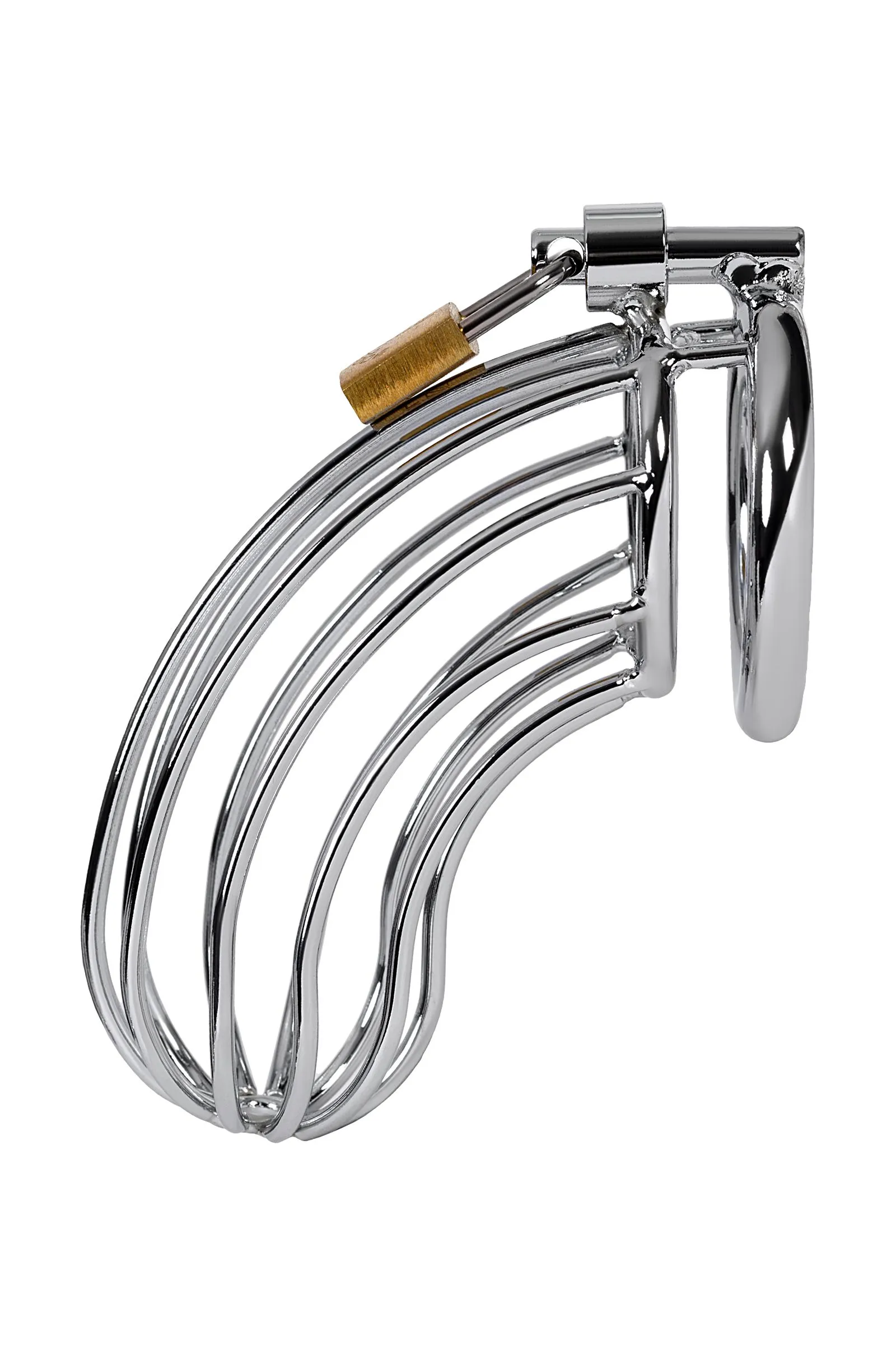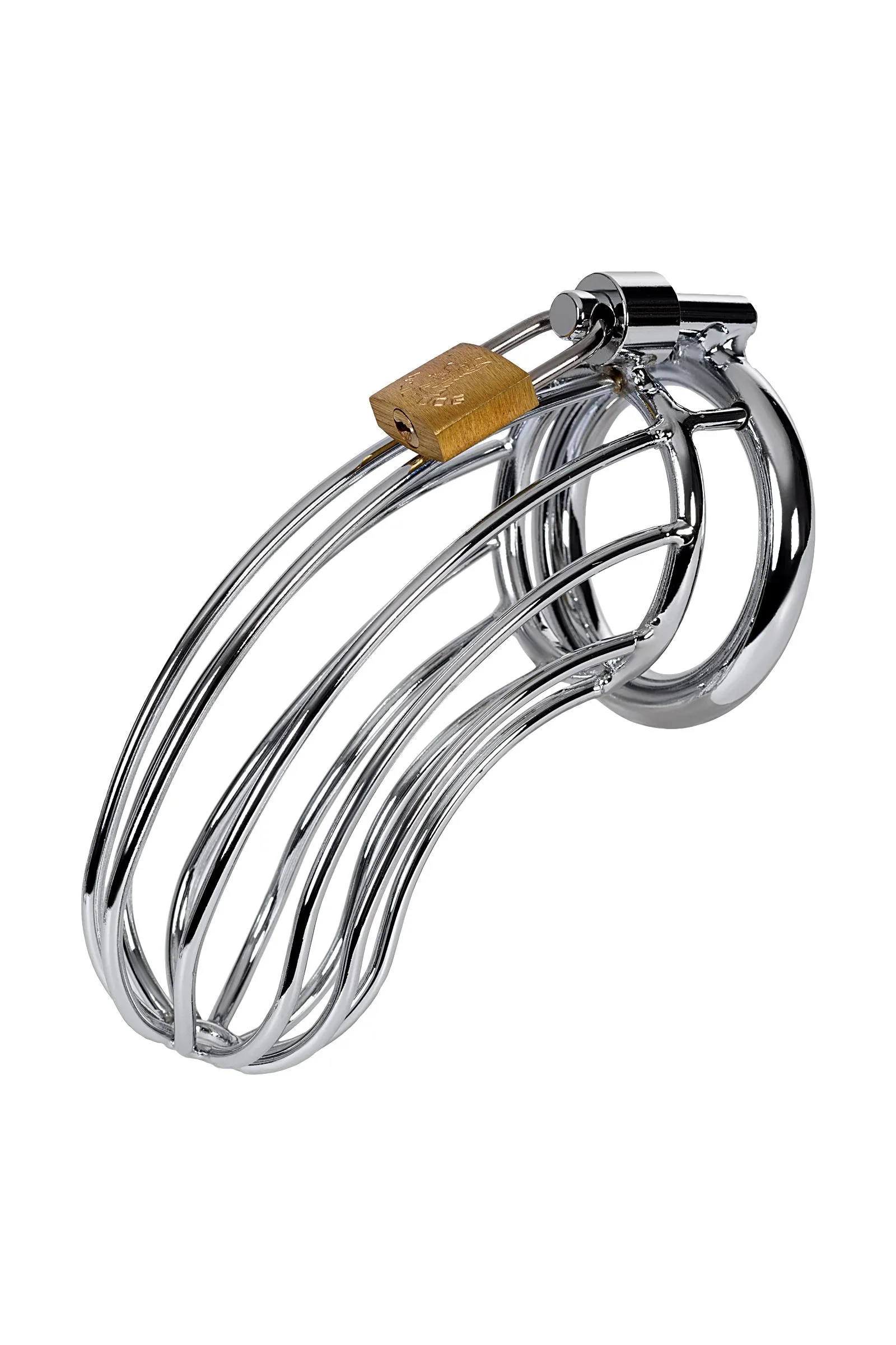 Металлический пояс верности имеет анатомическую форму и снабжен многочисленными отверстиями для гигиены. В комплекте 3 кольца для мошонки разных диаметров. Данный аксессуар отлично подойдет для эротических и ролевых игр. В комплекте также идет замок с тремя ключами.