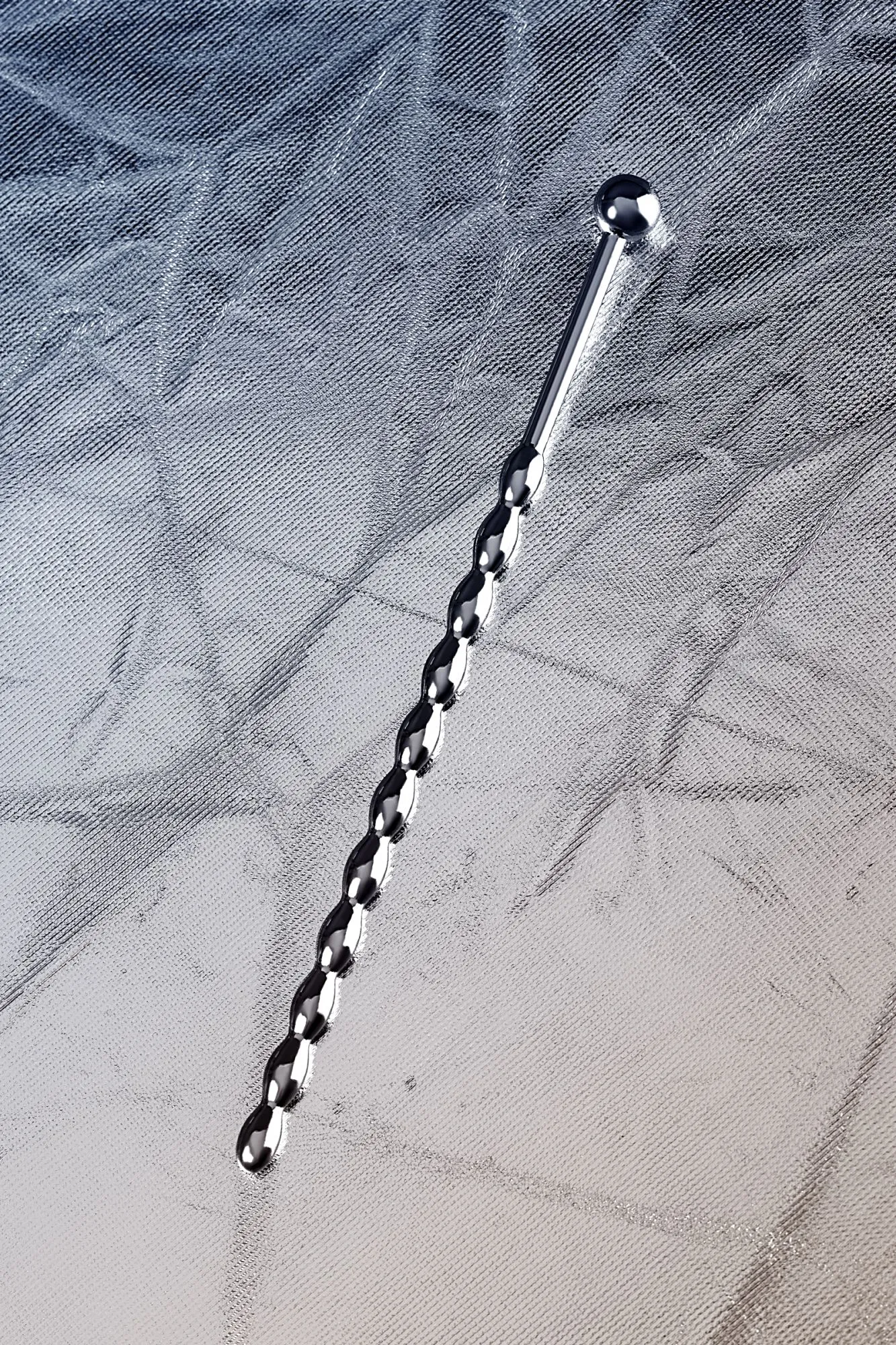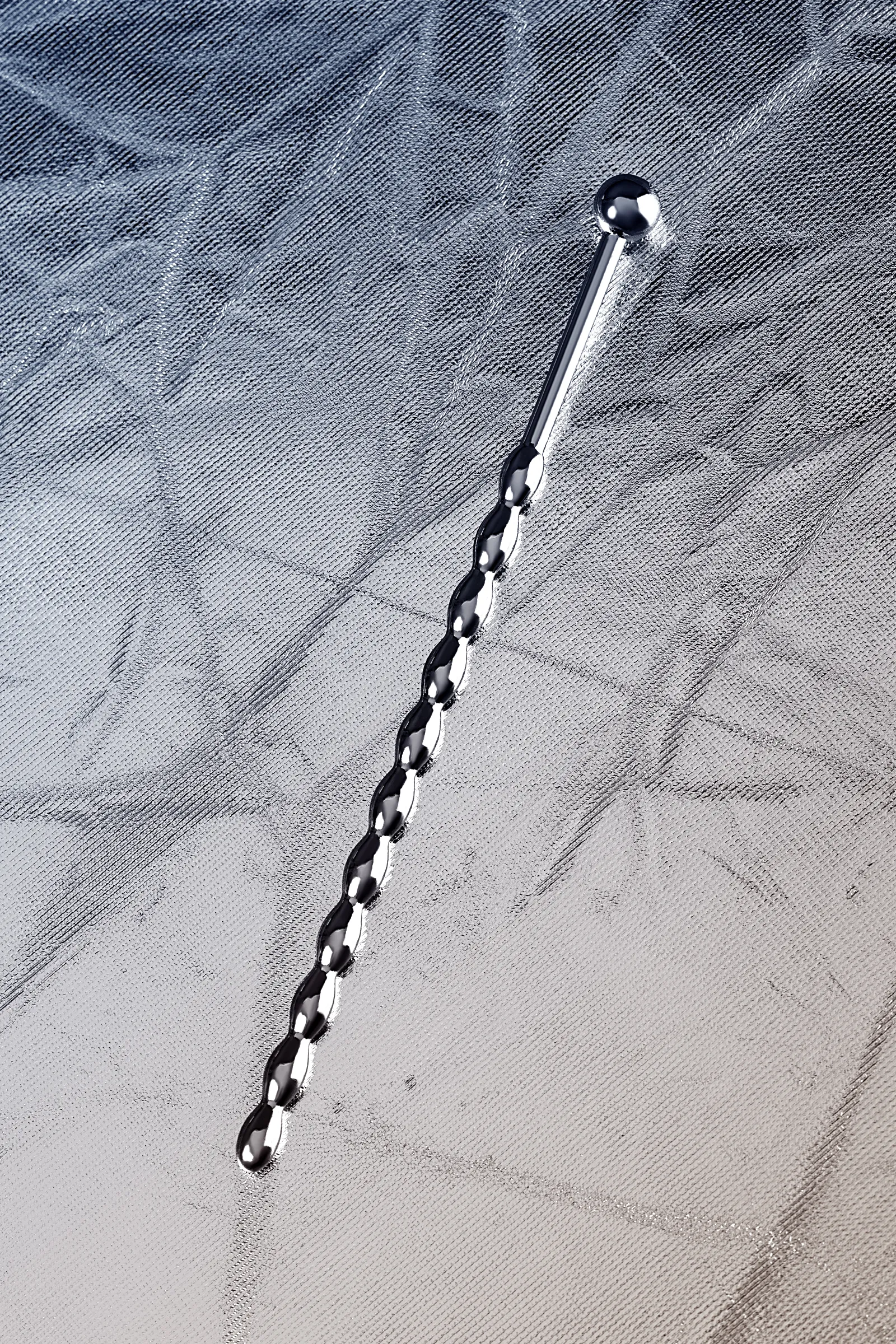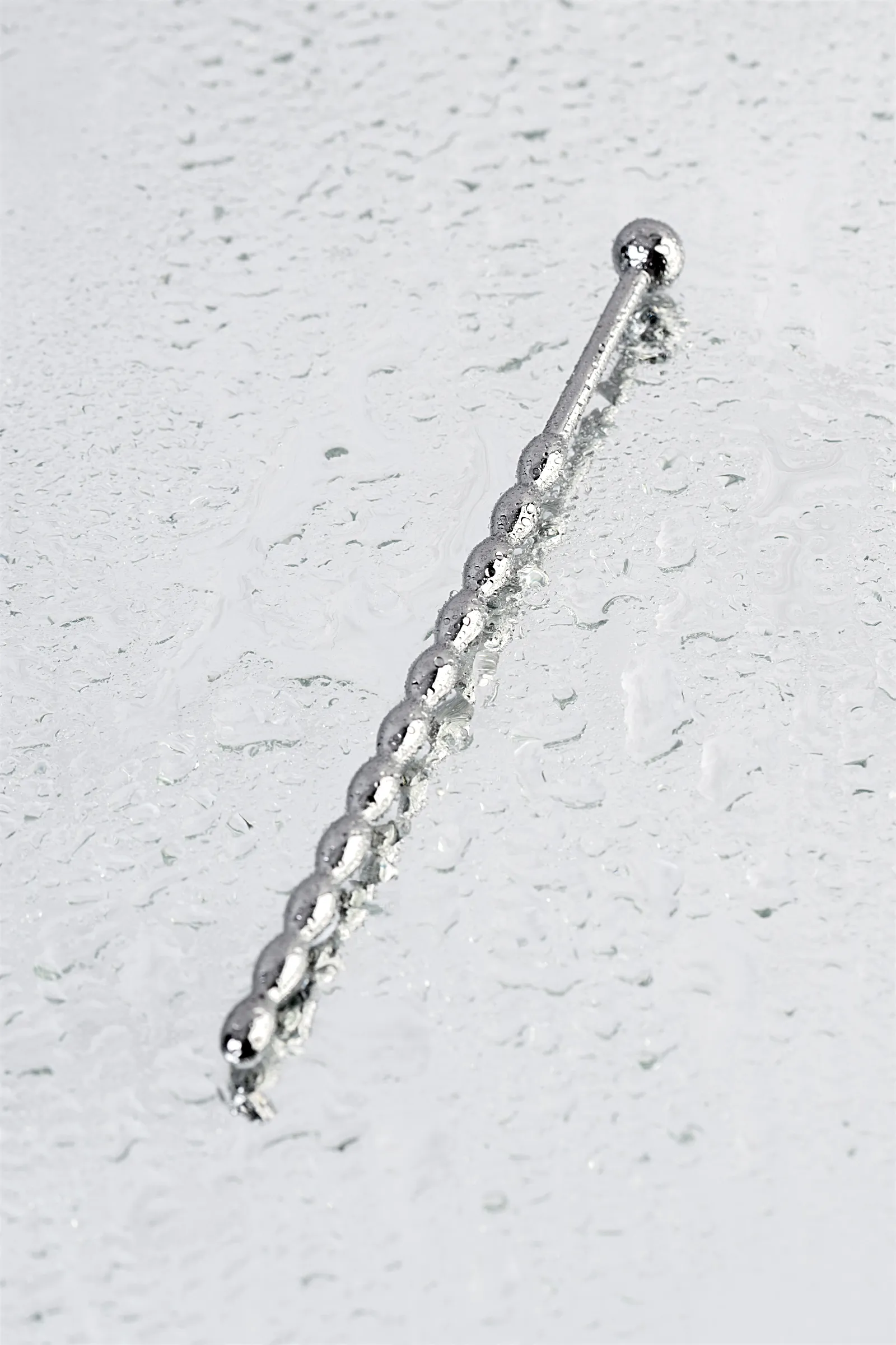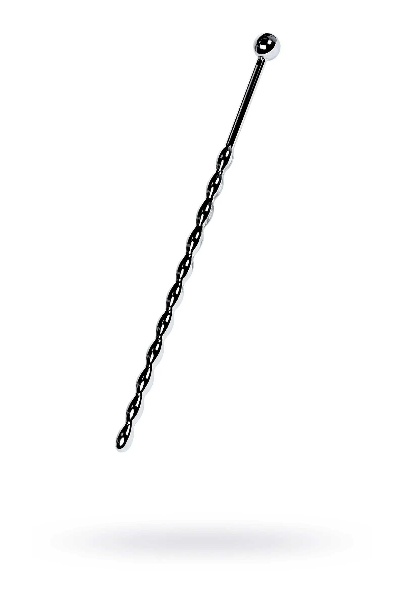 Уретральный плаг в форме косички. Небольшие звенья плавно меняют диаметр. Прекрасный вариант для исследования чувствительности своего организма: шарик на конце и удлиненное расстояние до фигурной части добавляют удобства при стимуляции уретры.