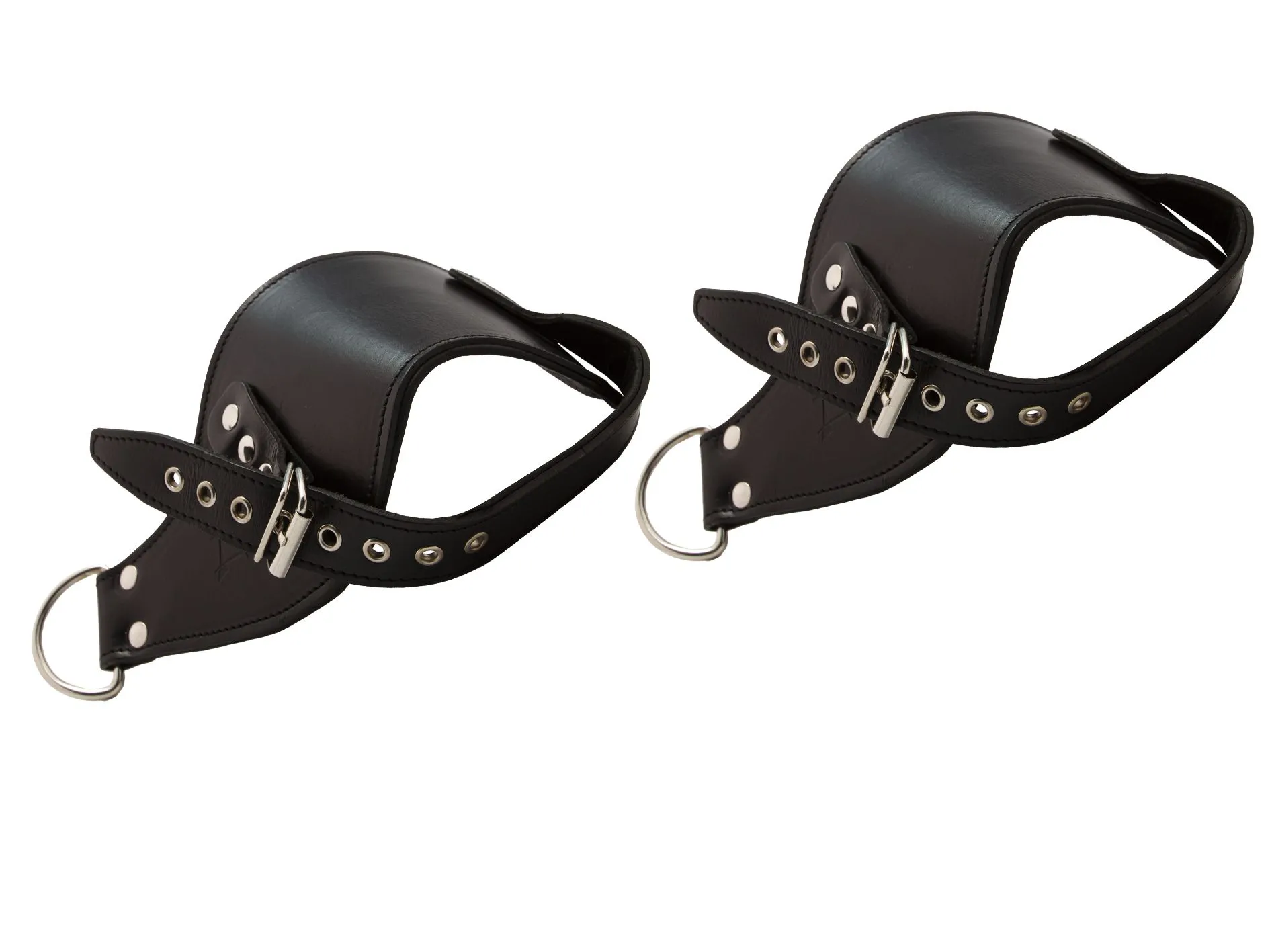 Специальные поножи для подвешивания от фирмы "Подиум СПб" - это Ваш помощник в реализации самых необузданных фантазий в БДСМ - сессиях. Они не нарушают кровообращение, просты в применении и обеспечивают надежную фиксацию. Данная модель изготовлена из жесткой натуральной кожи с металлической фурнитурой. Мягкая подкладка из синтетической пены уменьшает вероятность натирания кожи во время использования. Фиксируются при помощи ремешков.