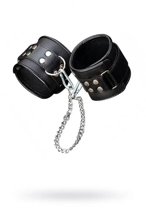 Изготавливаются из натуральной кожи с велюровой подкладой. Легко застёгиваются и расстёгиваются с помощью «липучки». Между слоем основы и подкладой проложена мягкая прокладка. Соединяются между собой цепочкой длиной 35 см с двумя карабинами на концах. Не нарушают кровообращение,