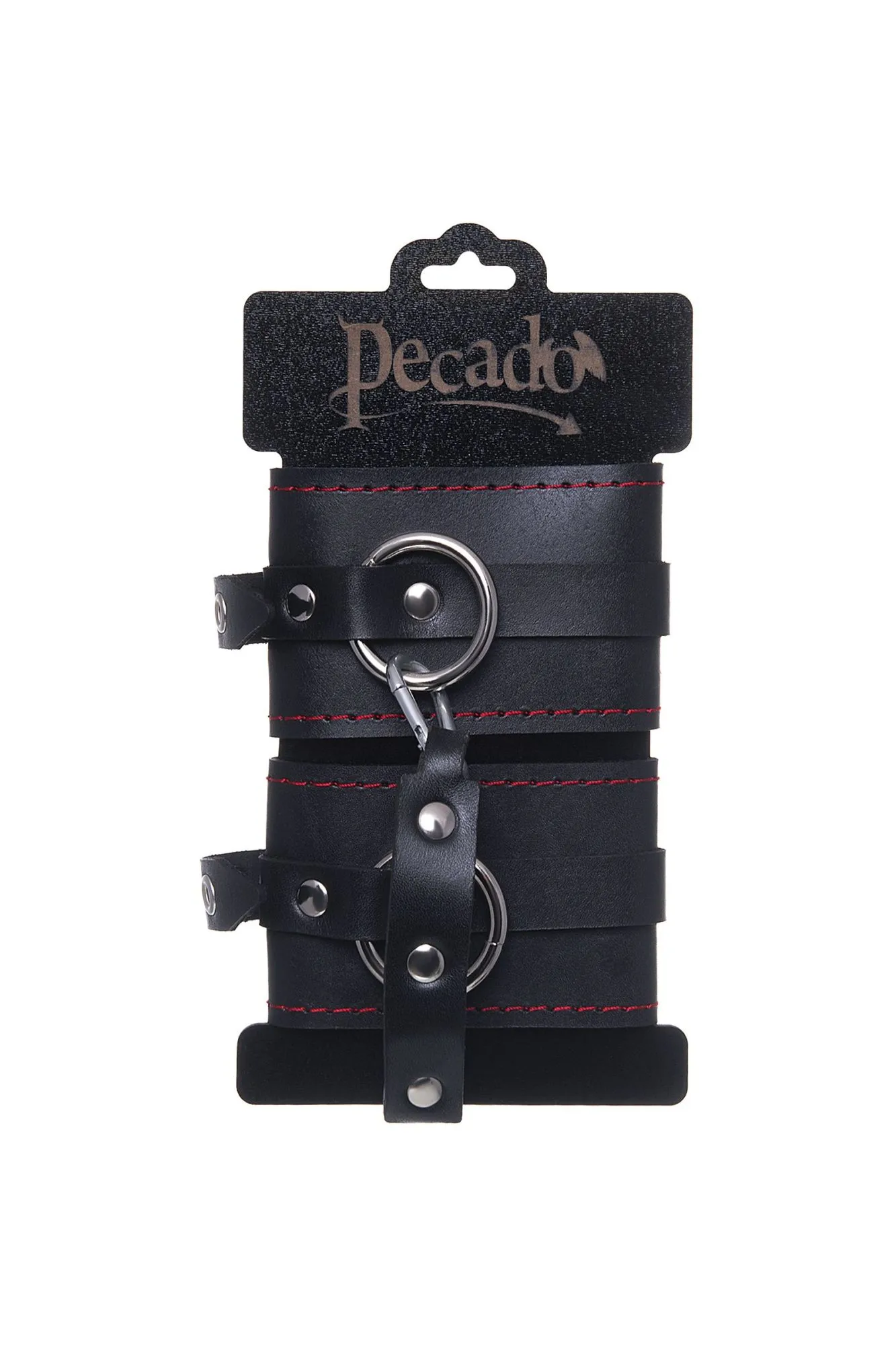 —Оковы Pecado BDSM, однослойные с контрастной строчкой, натуральная кожа, черные