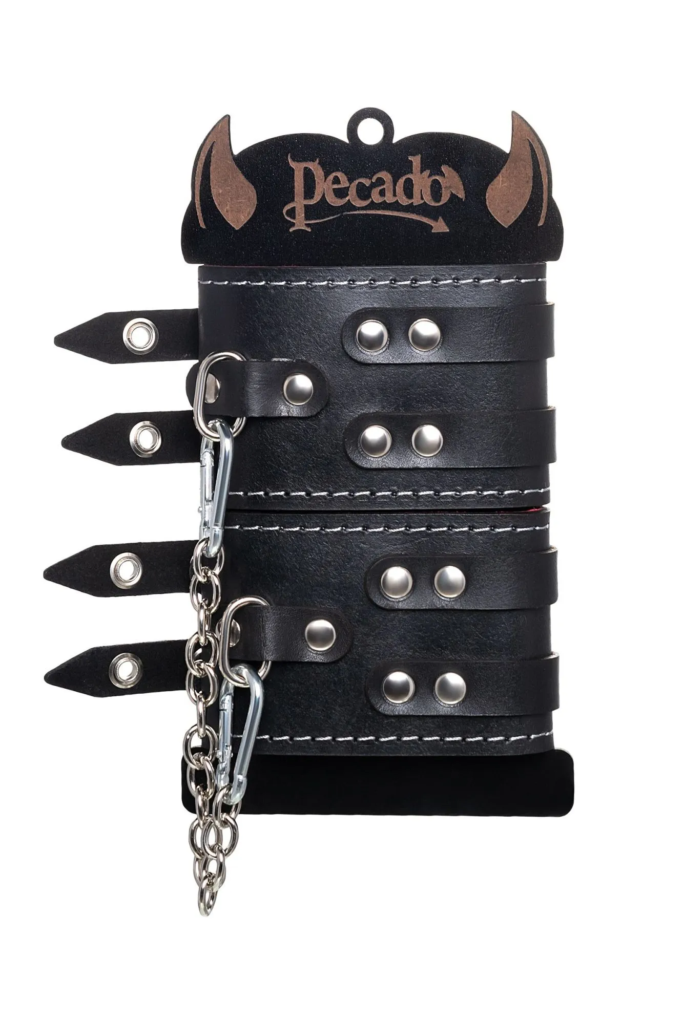 Готовы играть по-взрослому? Не бойтесь своих желаний! Основатели бренда уверены: лучший способ избавиться от искушения - поддаться ему! Добавьте пикантную деталь в ролевую игру и воплотите самую смелую сексуальную фантазию в реальность! Эти кожаные оковы с двумя ремнями и красной подкладкой могут стать стильным аксессуаром, а могут послужить вашим целям по своему прямому назначению. Частичное обездвиживание и невозможность двигать руками или ногами дают вам полную власть над партнером – взрослые игры для взрослых. Наличие двух колец и карабинов, соединенных между собой металлической цепочкой, позволяет использовать изделие как раздельно – аксессуар-манжеты, так и как оковы для фиксации. К широким металлическим кольцам также можно присоединить и другие аксессуары при помощи карабинов. Благодаря универсальному размеру оковы могут использоваться и мужчинами, и женщинами. Размер легко регулируется с помощью металлических пряжек, органично вписывающихся в общий стиль. Ширина манжет 7 см, длина манжет 25 см. Pecado BDSM – российский бренд, использующий высококачественные материалы и надежную, проверенную временем фурнитуру. Все изделия изготавливаются вручную из натуральной кожи, безопасный и экологичный материал не оставляет повреждений на запястьях. Натуральная кожа, металлические крепления и ремешки дают уверенность в надежной фиксации, устойчивости к механическим нагрузкам и долговременном использовании. Ширина манжет - 7 см. Длина манжет - 25 см. Длина сцепки - 20см.