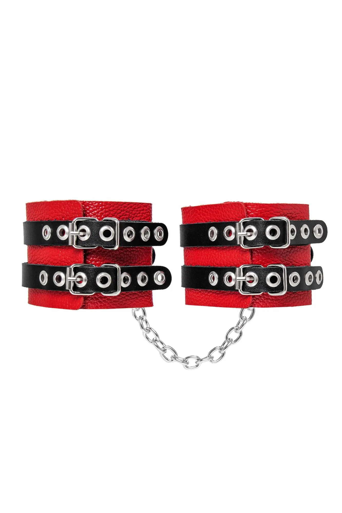 Мягкие оковы с двумя жёсткими ремешками от Pecado помогут обездвижить партнера во время сексуальных прелюдий или жестких БДСМ-играх. Оковы изготовлены полностью из красной, натуральной кожи.Ремешки выполнены из чёрной жёсткой кожи, украшены люверсами. Выделка материала произведена вручную. Ремешки и широкая манжета хорошо держат форму: не тянутся и не мнутся. Качественная металлическая фурнитура добавляет лоска изделию, а аромат натуральной кожи повышает градус возбуждения. Благодаря широкому запасу регулировок, можно подобрать необходимый обхват. Аксессуар удобно застегивать и легко расстегивать. При правильном использовании не оставляет следов на теле и не доставляет дискомфорта. Манжеты оков соединяется между собой помощью двух карабинов и съемной стальной цепочки. Подходит и для женских, и для мужских ног. ● 100% натуральная кожа. ● Ручная работа. ● Износостойкий, тактильно приятный материал. ● Надежная высококачественная фурнитура. ● Универсальный размер. ● Ширина манжет - 7см. Длина манжет - 25см. Длина сцепки - 20см.