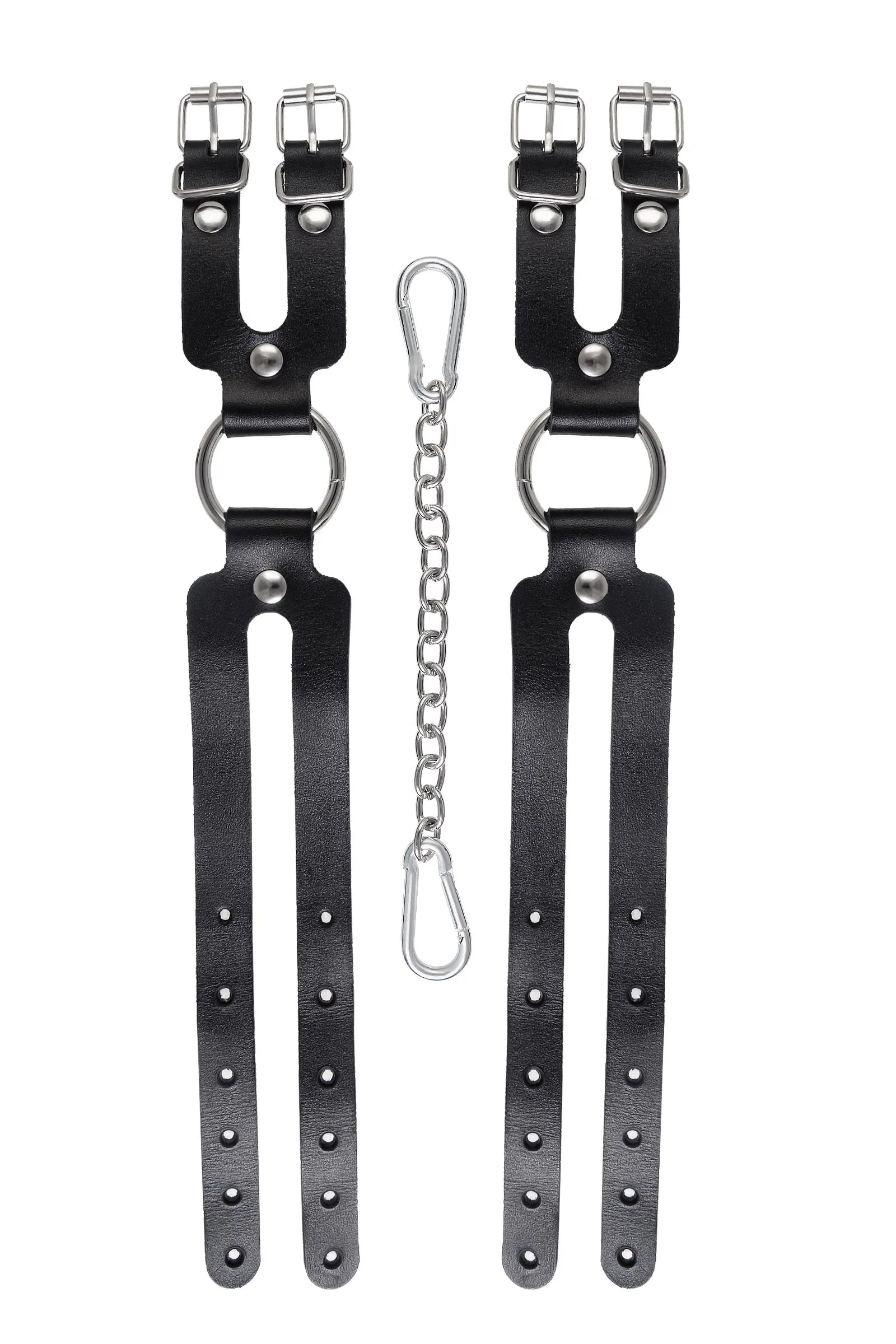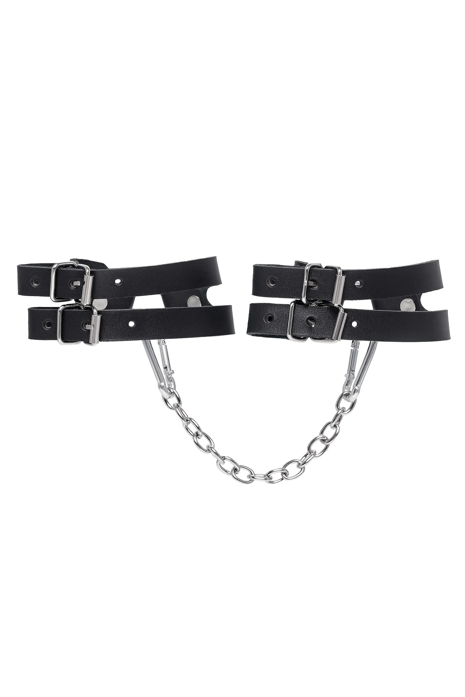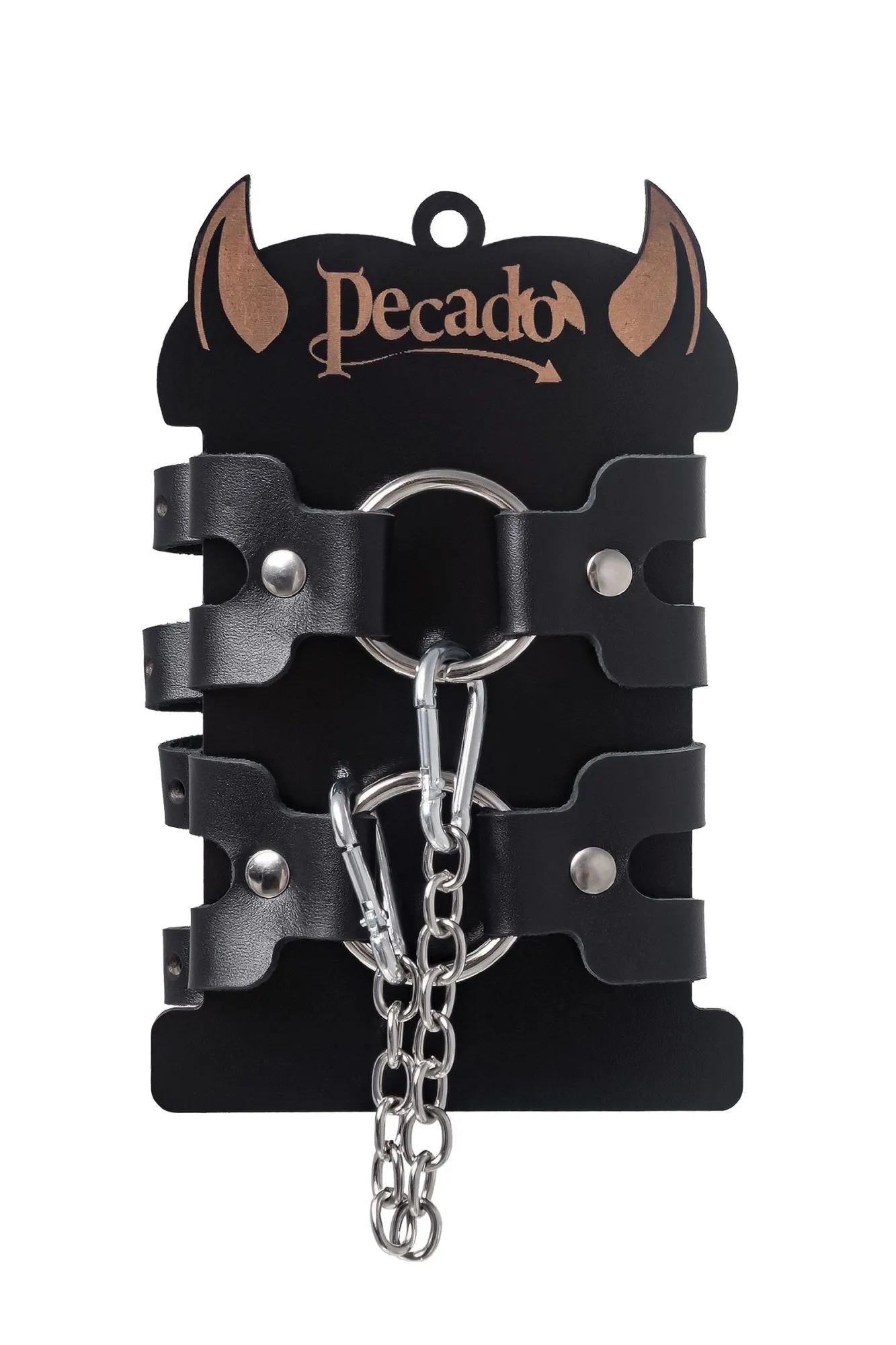 Оковы из двух ремешков от Pecado – надежный помощник для того, что обездвижить партнера в ролевых играх. А также зафиксировать ноги в нужной позе. Сексуальный атрибут изготовлен из безопасной, натуральной кожи, полностью вручную. Материал износостойкий, а это значит, что аксессуар будет радовать Вас долгое время. Девайс тактильно приятный с обеих сторон. Надежно фиксируется с помощью качественной, стальной фурнитуры. Не расстегивается при активном использовании в процессе игр. Благодаря двум карабинам на цепи, и металлическим кольцам, манжеты соединятся вместе. При необходимости, можно использовать как более длинные цепи, так и другие аксессуары. Подходит как для мужчин, так и для женщин. Погрузитесь в мир особых чувств и желаний! Вместе с Pecado. ● 100% натуральная кожа. ● Ручная работа. ● Износостойкий, тактильно приятный материал. ● Надежная высококачественная фурнитура. ● Универсальный размер. ● Длина ремешков 1 – 22 см, длина ремешков 2 - 8 см, ширина ремешков- 1,6 см, длина сцепки – 20 см.