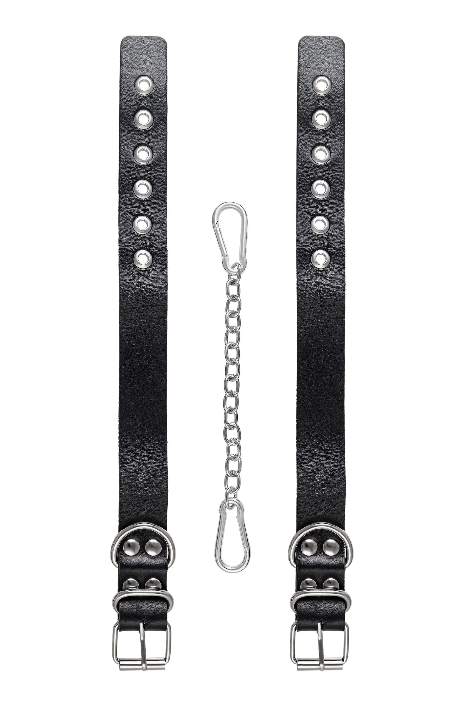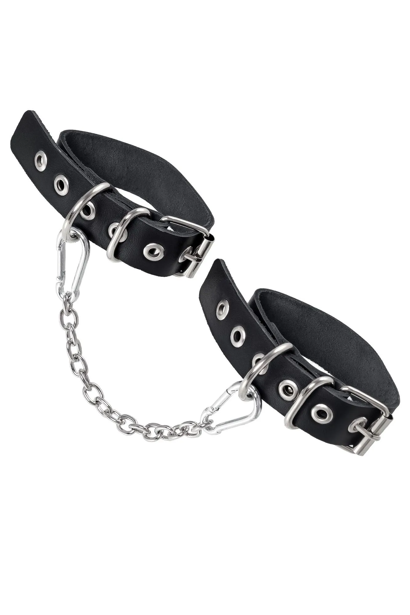 Оковы Pecado BDSM, из одного ремешка с люверсами, натуральная кожа, чёрные