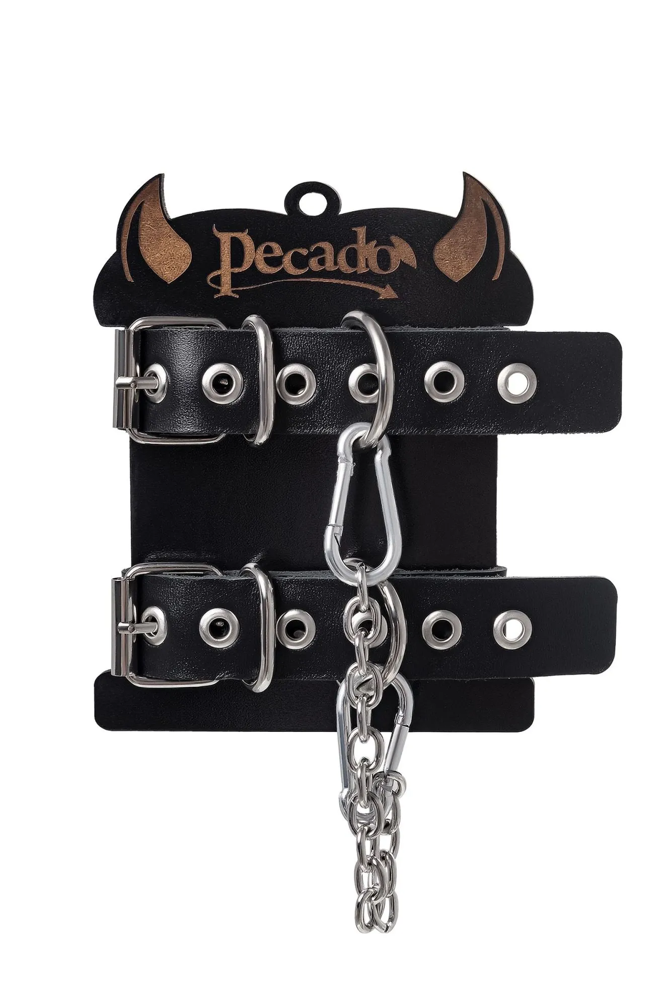 —Оковы Pecado BDSM, из одного ремешка с люверсами, натуральная кожа, чёрные