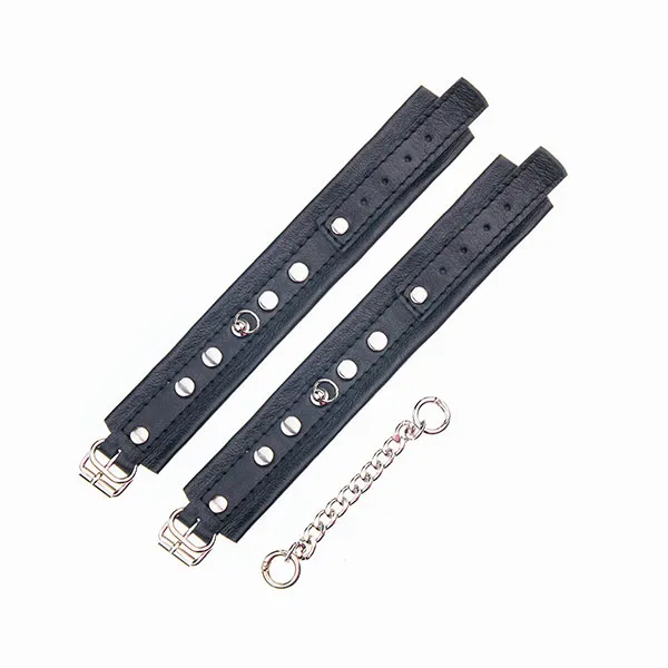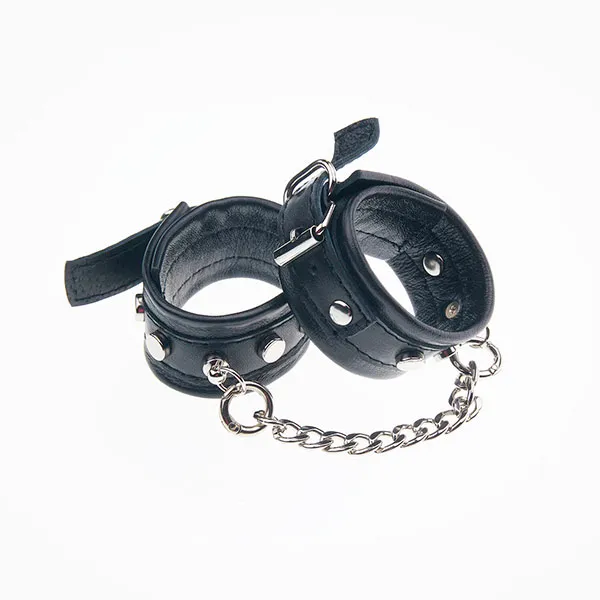 Чёрные классические кожаные наручники для фантазийных игр в стиле БДСМ. Пусть партнёр подчинится вам, и делает всё, что вы скажете. Тем пикантней, интересней и волнительней будет ваш контакт. Кожа - символ силы и власти, как и металл. Дайте вашей половинке это почувствовать.