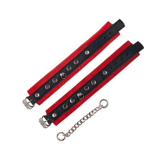 Такие игры с элементами БДСМ способны добавить острых ощущений в интимную близость пары и вдохновить на поиск новых источников удовольствия. Наручники сделаны из замши и соединены между собой металлической цепочкой на карабинах. Наручники регулируются по размеру ремешками с пряжками.