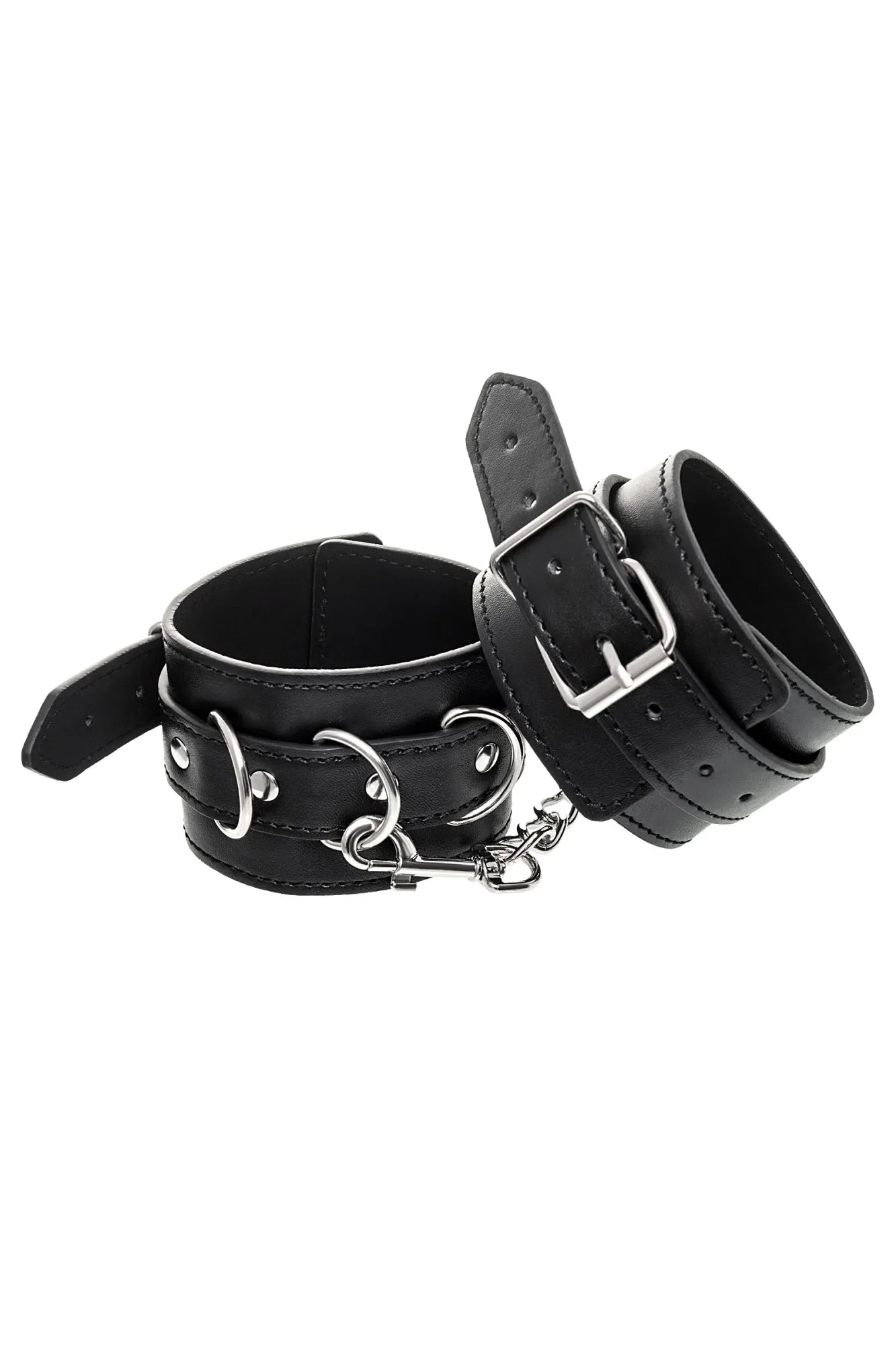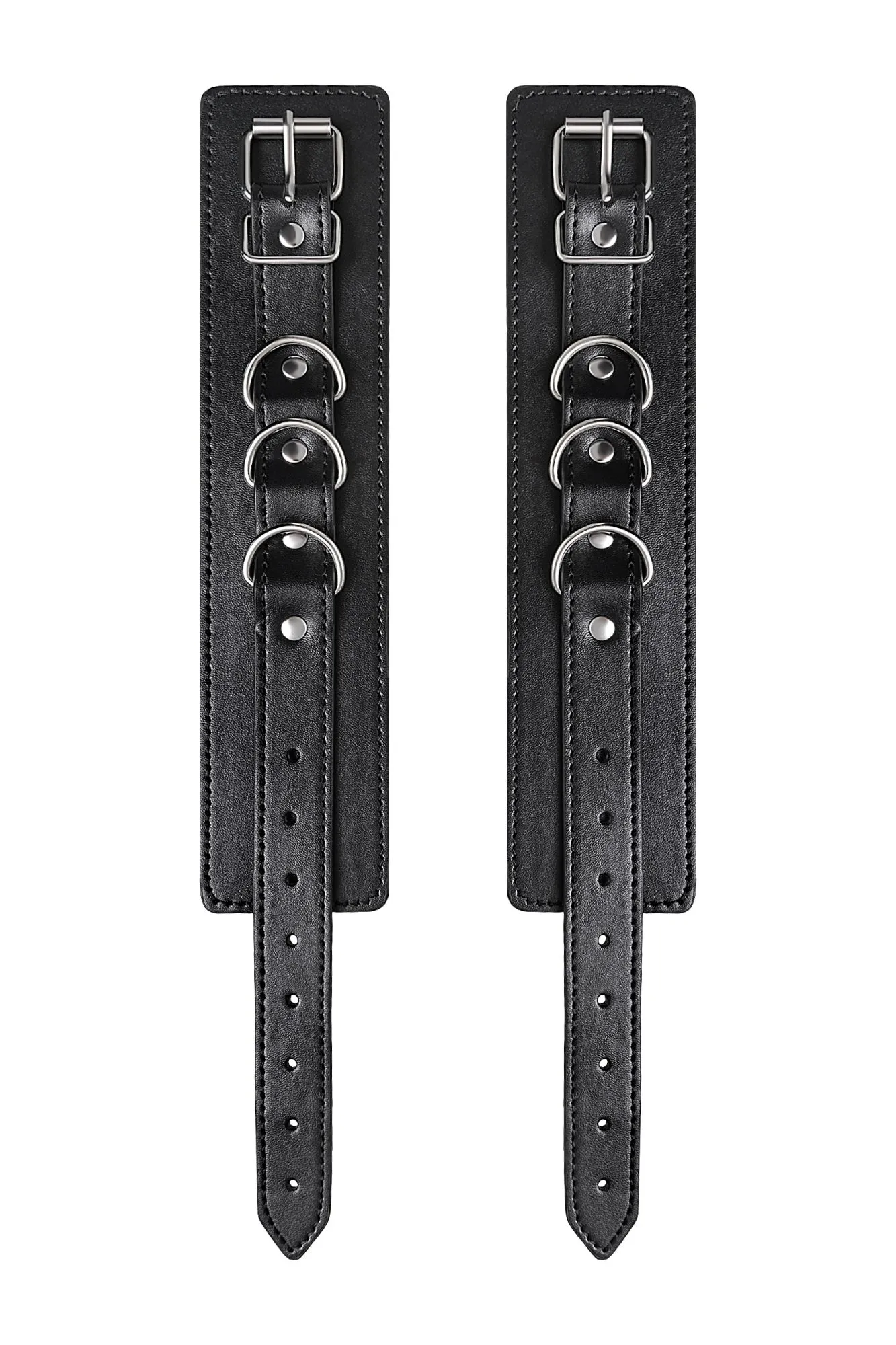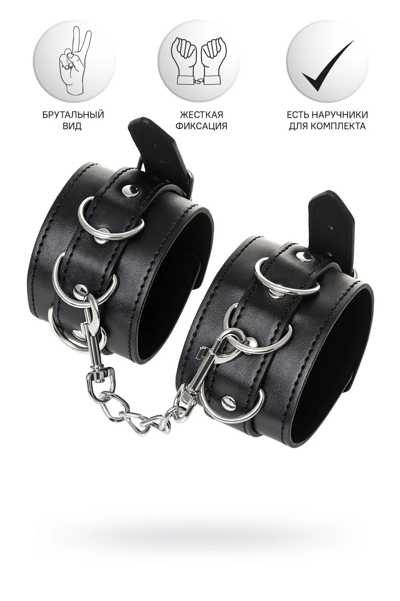 Черные оковы с металлической отделкой – брутальные ограничители свободы. К тому же, они на самом деле весьма жестко обхватывают ноги и надежно соединяют их между собой цепочкой на карабинах. Три кольца для крепления дают возможность дополнить поножи аксессуарами и использовать различные варианты фиксации. Длина оков позволяет использовать их практически на любой размер ног. Отрегулировать размер и силу обхвата легко с помощью ремешка и металлической пряжки. Черные оковы с металлической отделкой – это стиль и функционал. Теперь Доминант покажет, что значит грубое обращение и полный контроль над свободой. Материал: PU кожа, металл Цвет: черный Длина: 26,5 см Ширина: 6 см Длина сцепки: 15,5 см