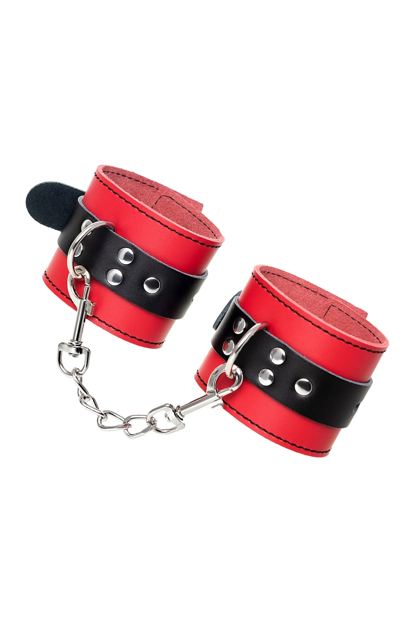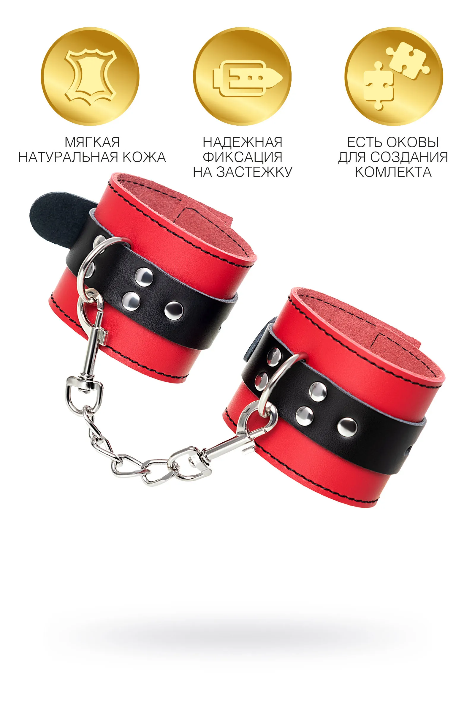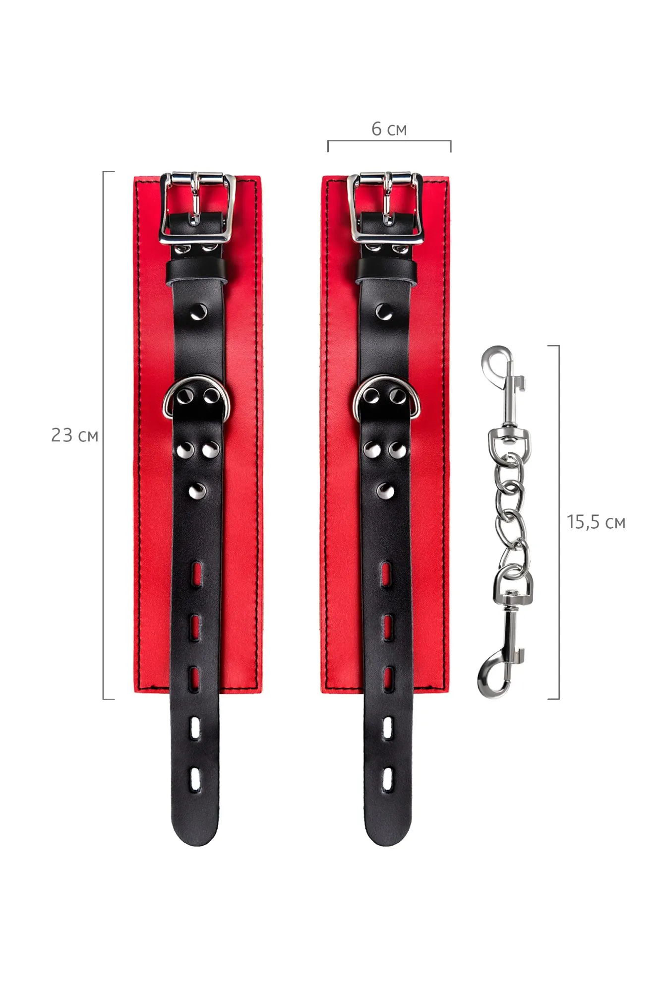 Наручники Наручники - волнующий воображение аксессуар, ведь это способ зафиксировать руки партнера и получить полный доступ к его телу. Но не забудьте про стоп-слово. Наручники из мягкой натуральной кожи сочетают в себе элементы, возбуждающие страсть и фантазию: красный и черный цвета и отделка металлическими элементами. В них будет комфортно подчиняться и ощущать ограничение свободы действий. Не натирают и имеют надежную степень фиксации. Размер легко регулируется металлической пряжкой. Эта пара - отличный вариант для начинающих в БДСМ-играх. Так почему бы не открыть для себя что-то новое? Длина наручников 23 см Ширина наручников 6 см Длина сцепки 15,5 см Материал: кожа, металл В фотосессии на модели использованы пэстис Theatre 705006